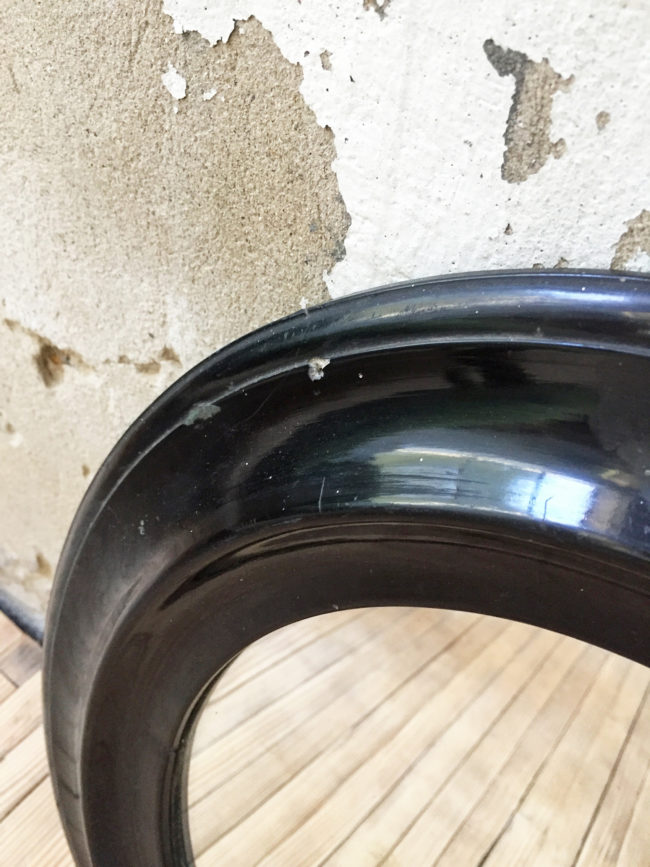 Le dos du cadre n’est pas d’origine. Présence d’un manque de forme triangulaire dans le cadre d’un centimètre environ ainsi que deux éclats comme l’attestent les photos.