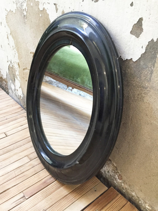 Ancien petit miroir Napoléon du XXème siècle de forme ovale.