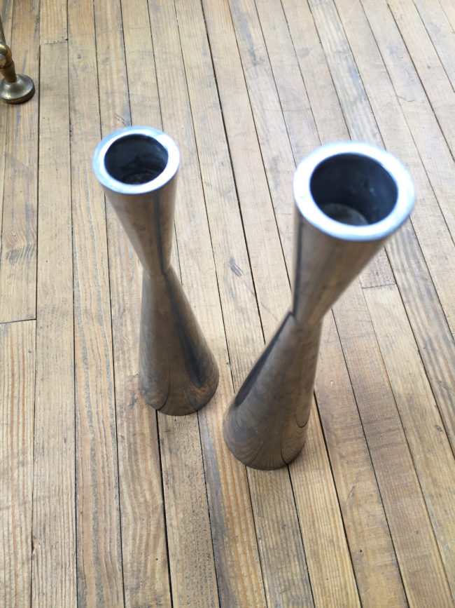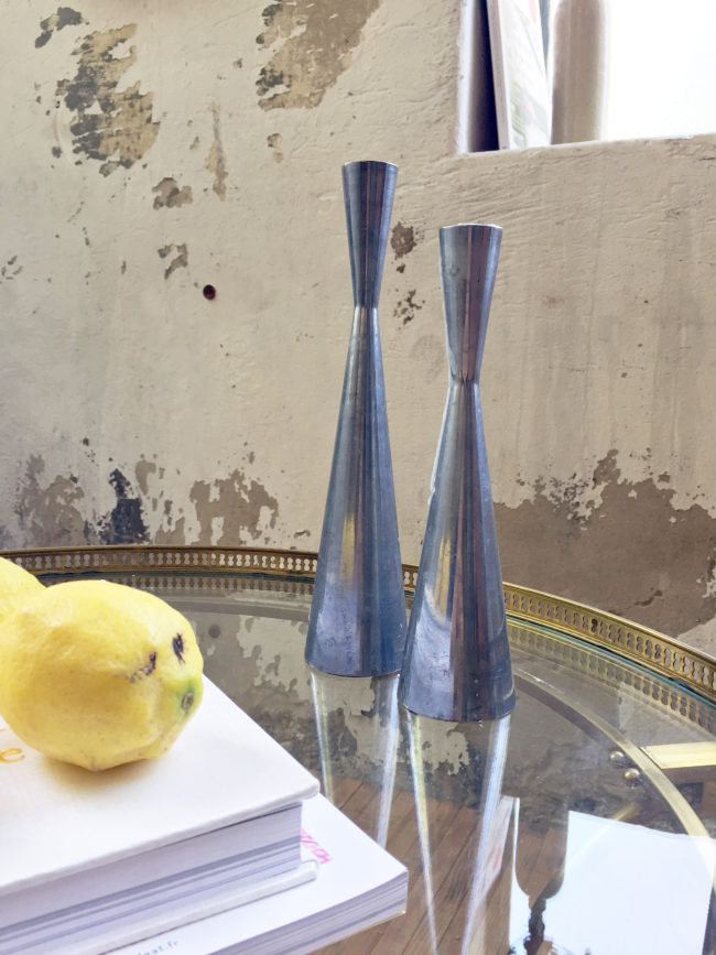 Ancienne paire de bougeoirs chromés à l’allure scandinave.
