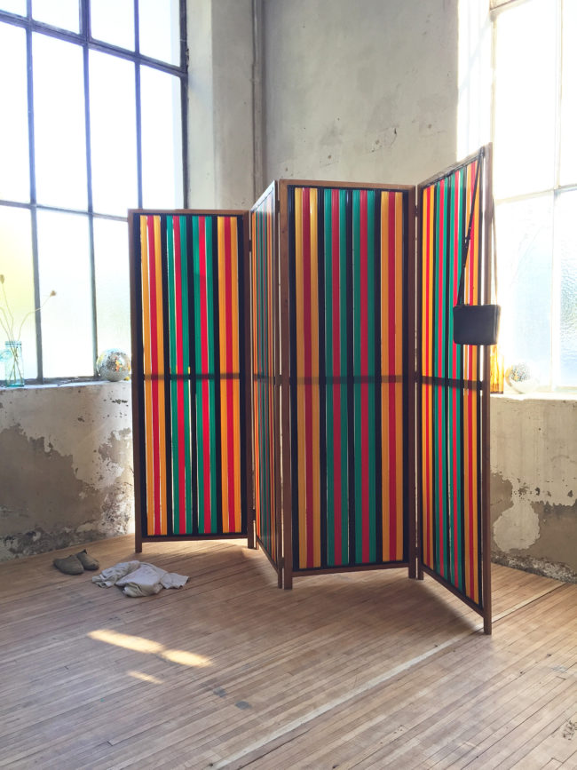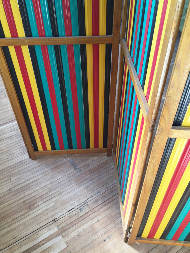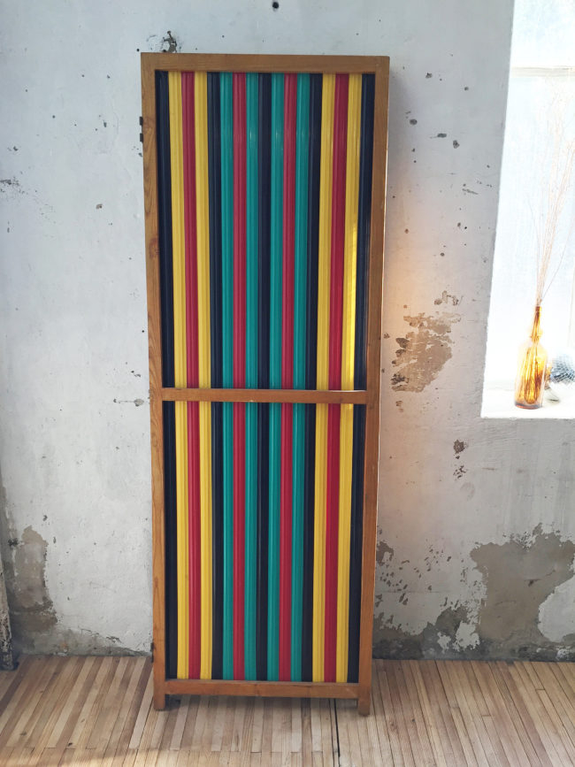 Les lamelles verticales et le rythme coloré de ces dernières confère à ce paravent un vrai côté graphique et design.