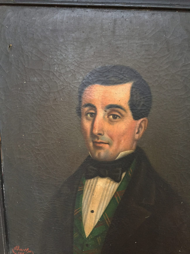 Signée Barthe datée de 1854, cette peinture est dans un très bel état de conservation. On aime l'effet craquelé de la peinture dû à son âge, les couleurs sont encore très vives.