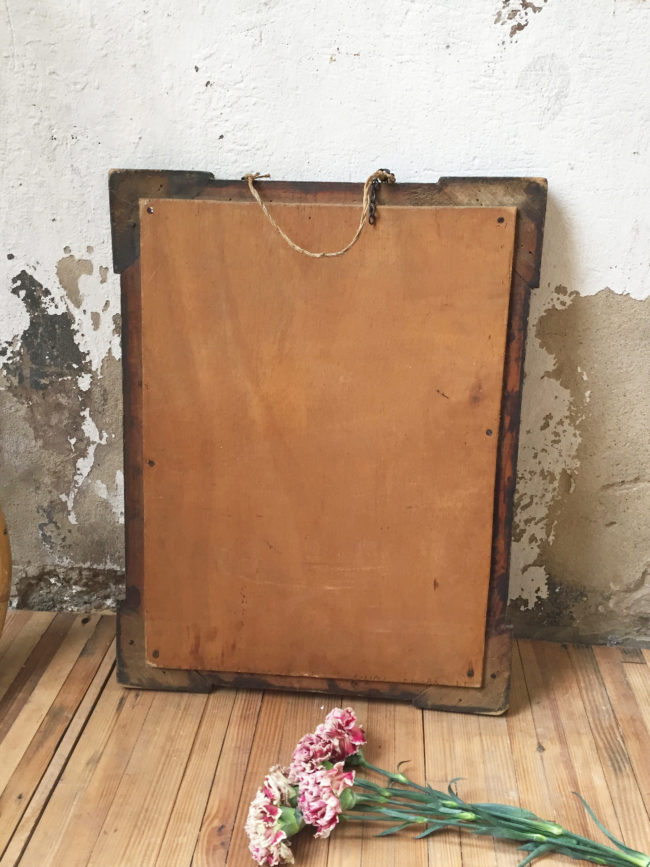 Il possède un fond en bois avec deux accroches sur lesquelles vous pourrez fixer une chainette ou une cordelette.