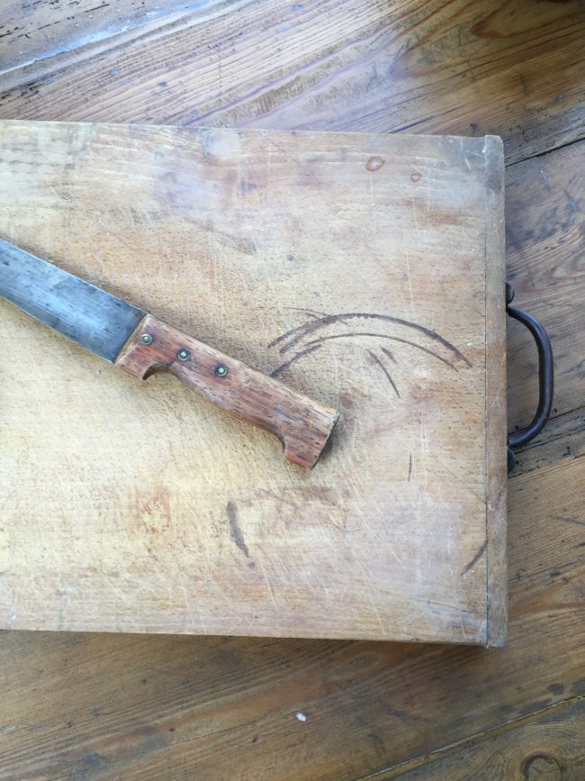 Ancienne planche à découper en bois massif.