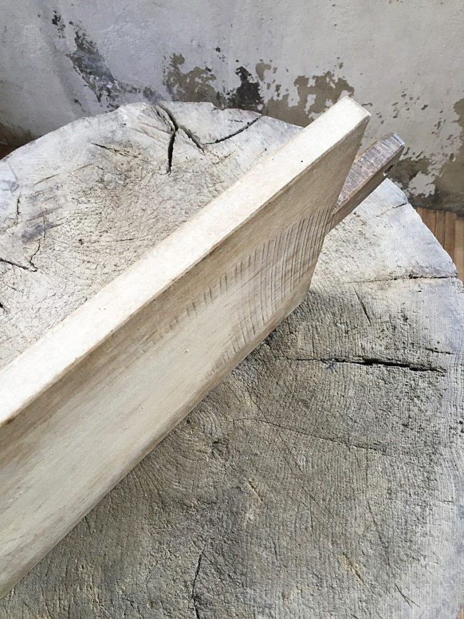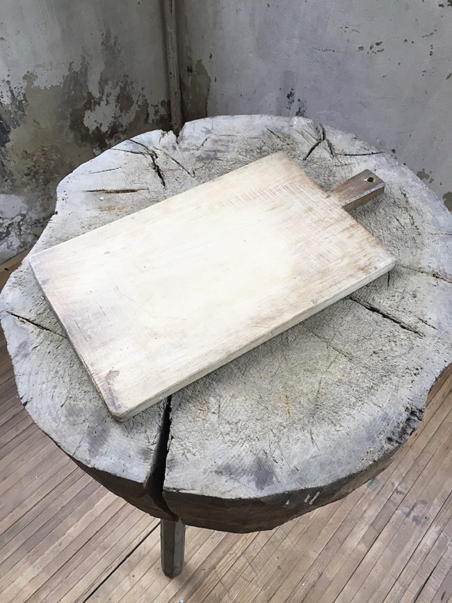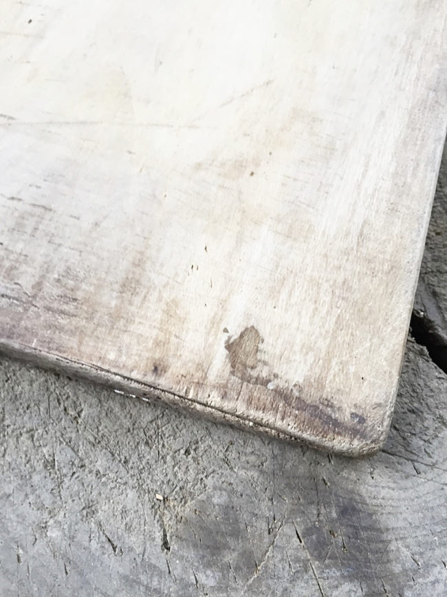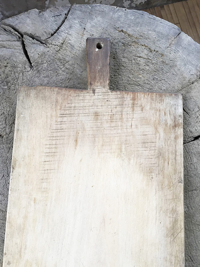 Ancienne grande planche à découper, avec une jolie patine du bois.