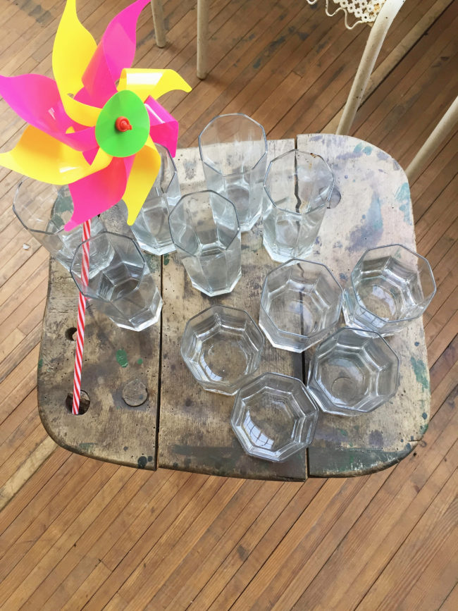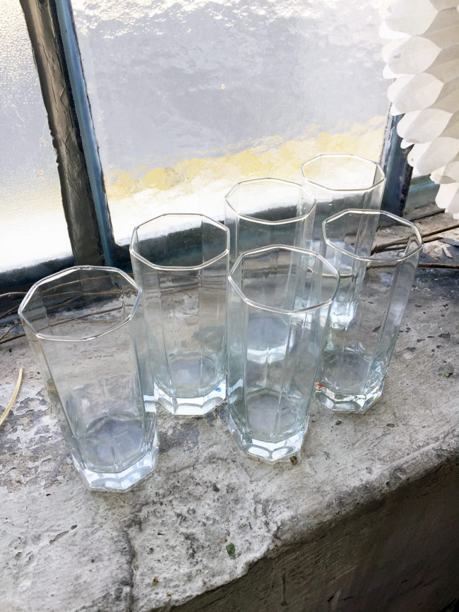 Anciens verres à motif géométrique.