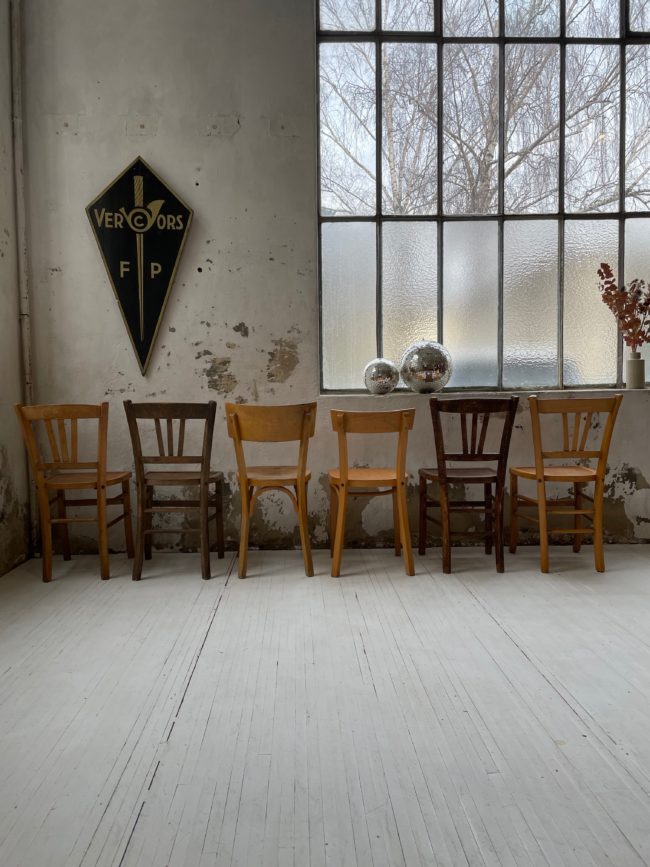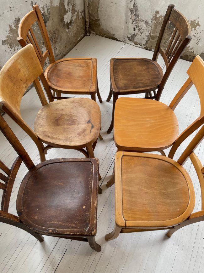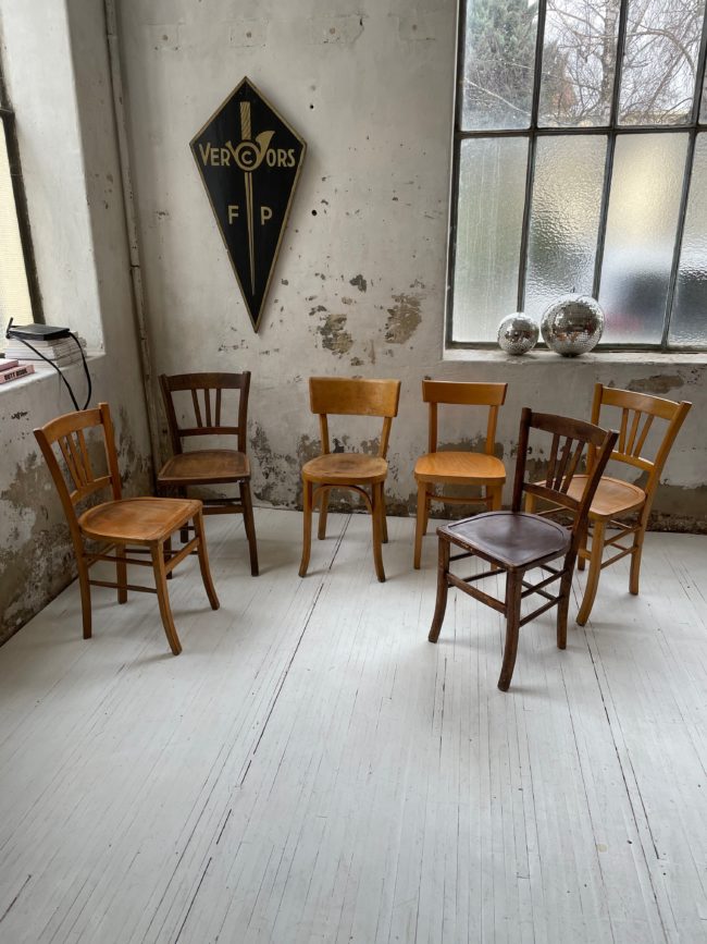 Set composé de 6 chaises bistrot dépareillées.