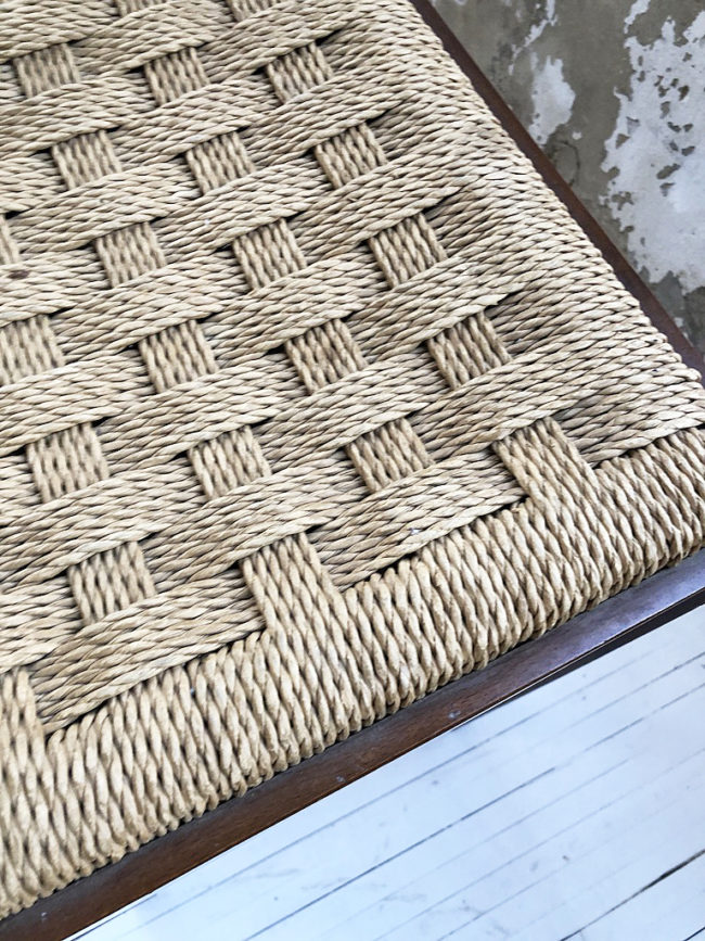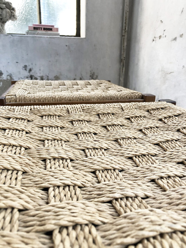L’assise est très design avec ses cordes tressées.