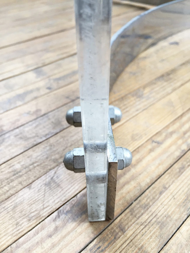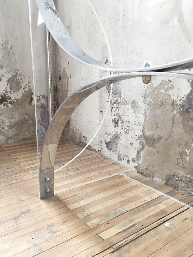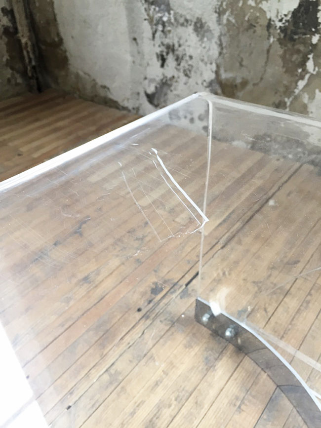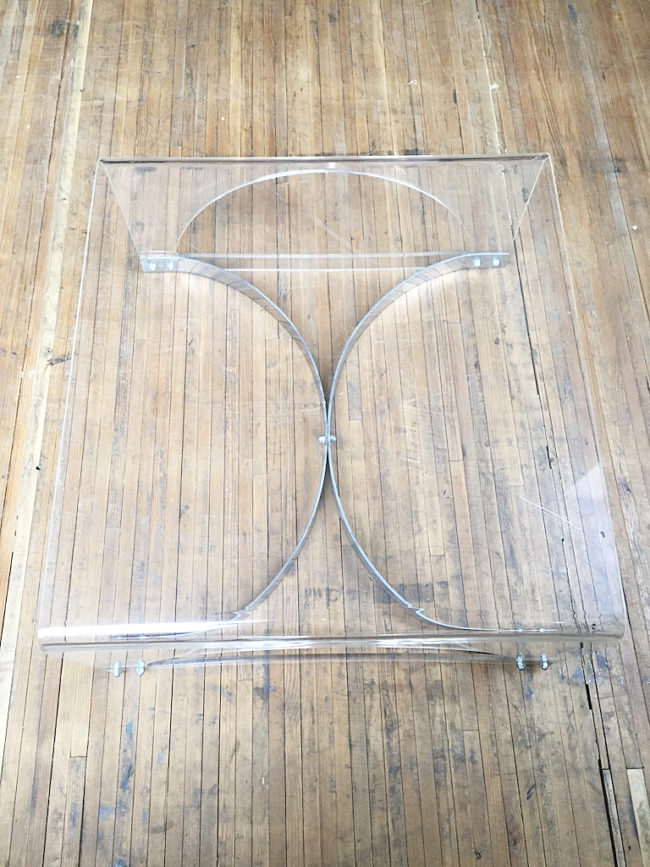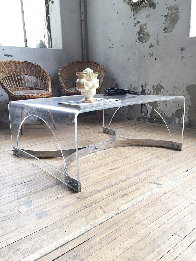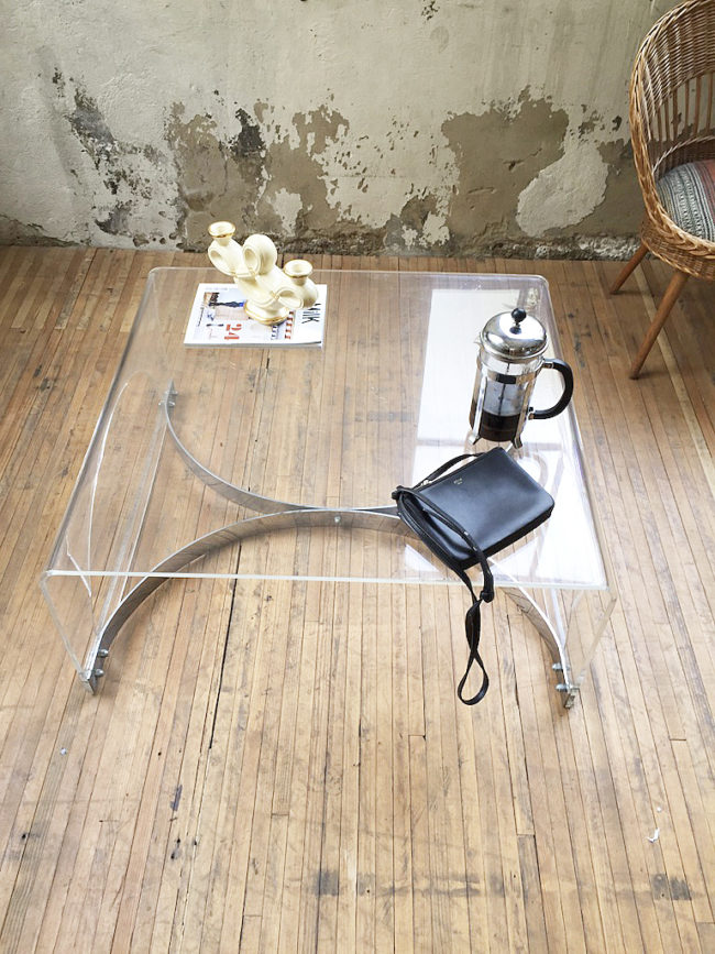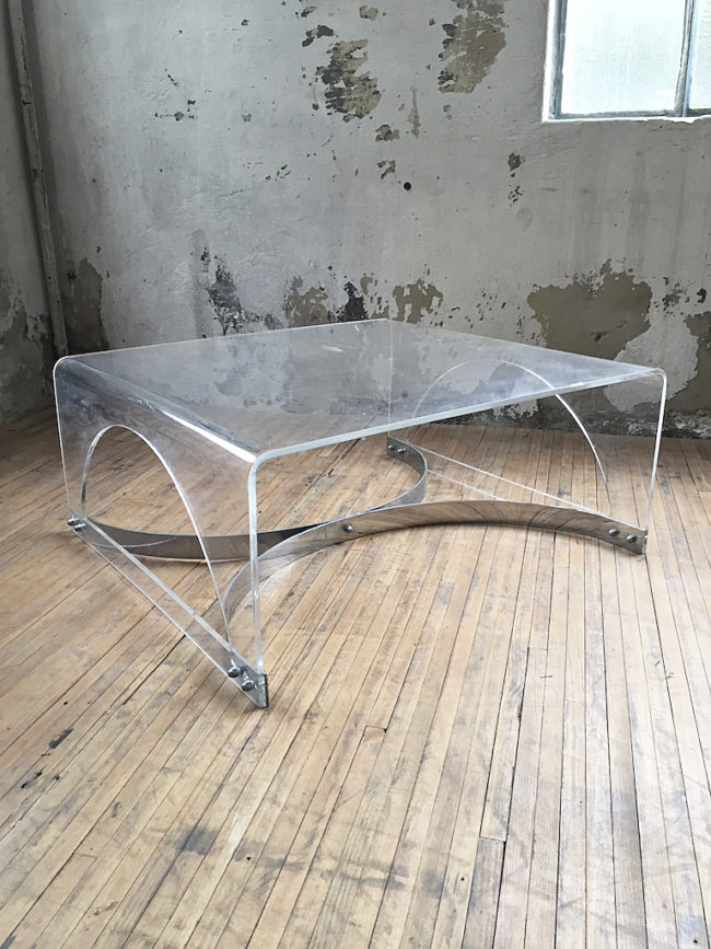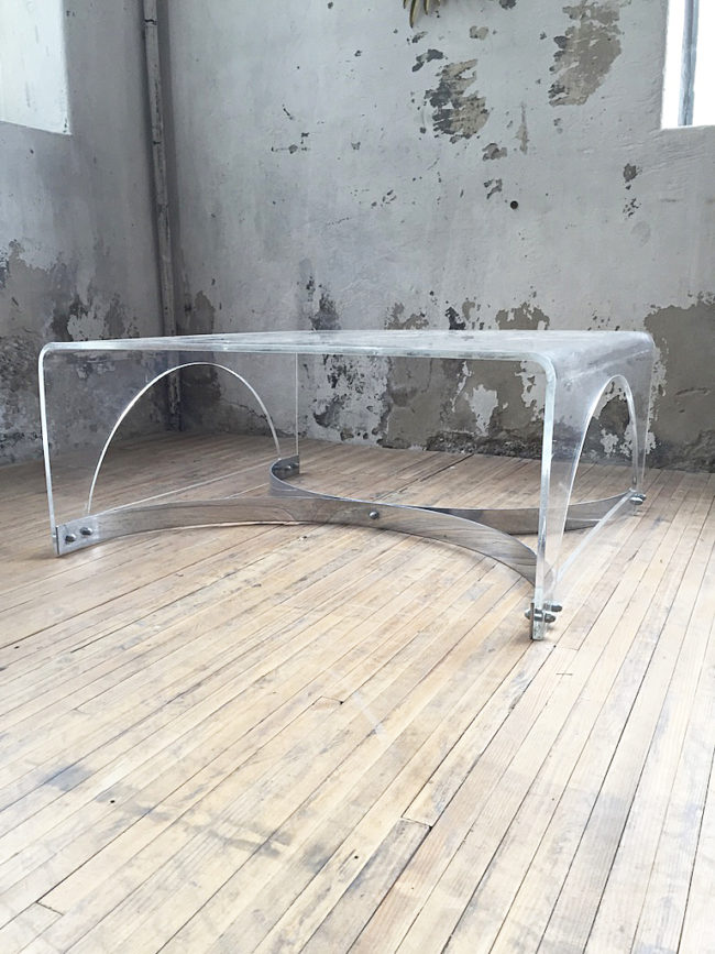 Table basse des années 70 en plexiglass / lucite transparent.