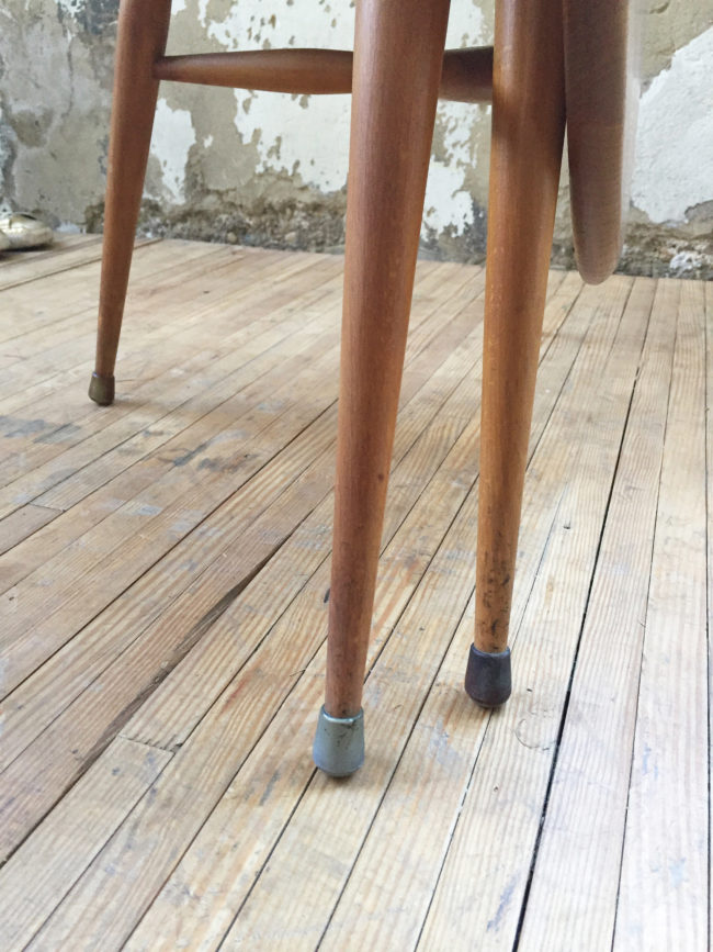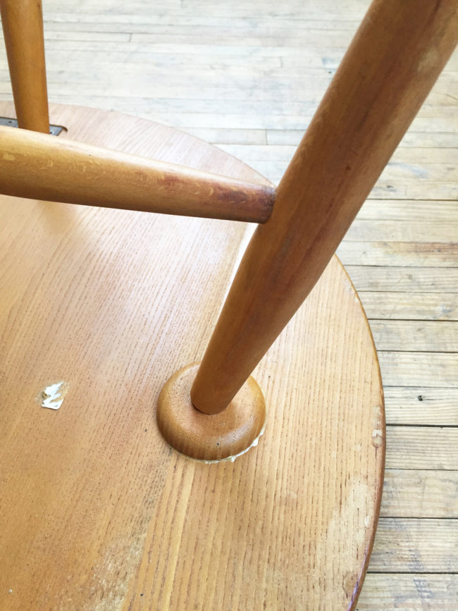 Table en orme massif et piètement évasé en hêtre.
