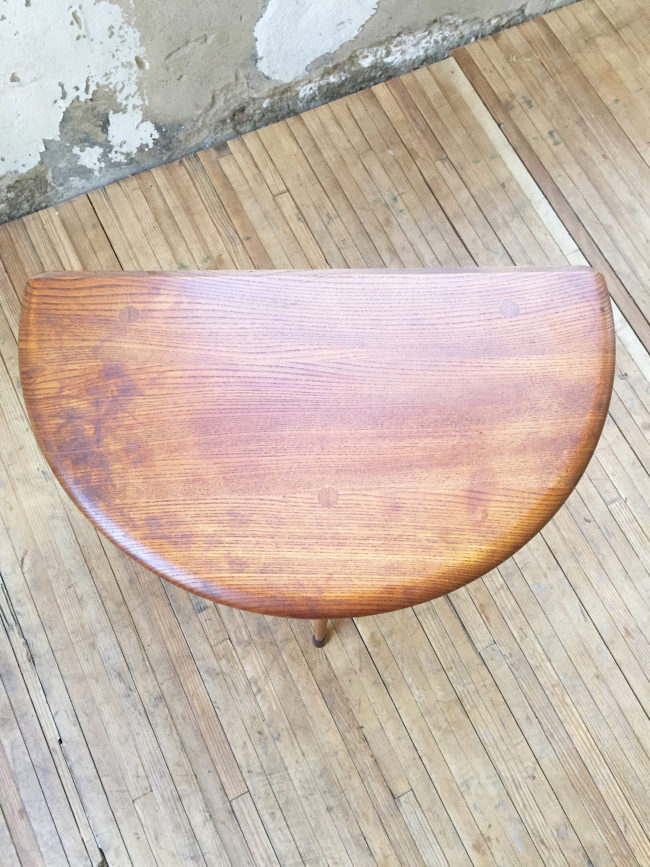 Ainsi cette petite table pourra être utilisée aussi bien dans son format rond, que dans son format demi-lune, apposée contre un mur par exemple.