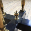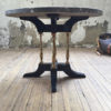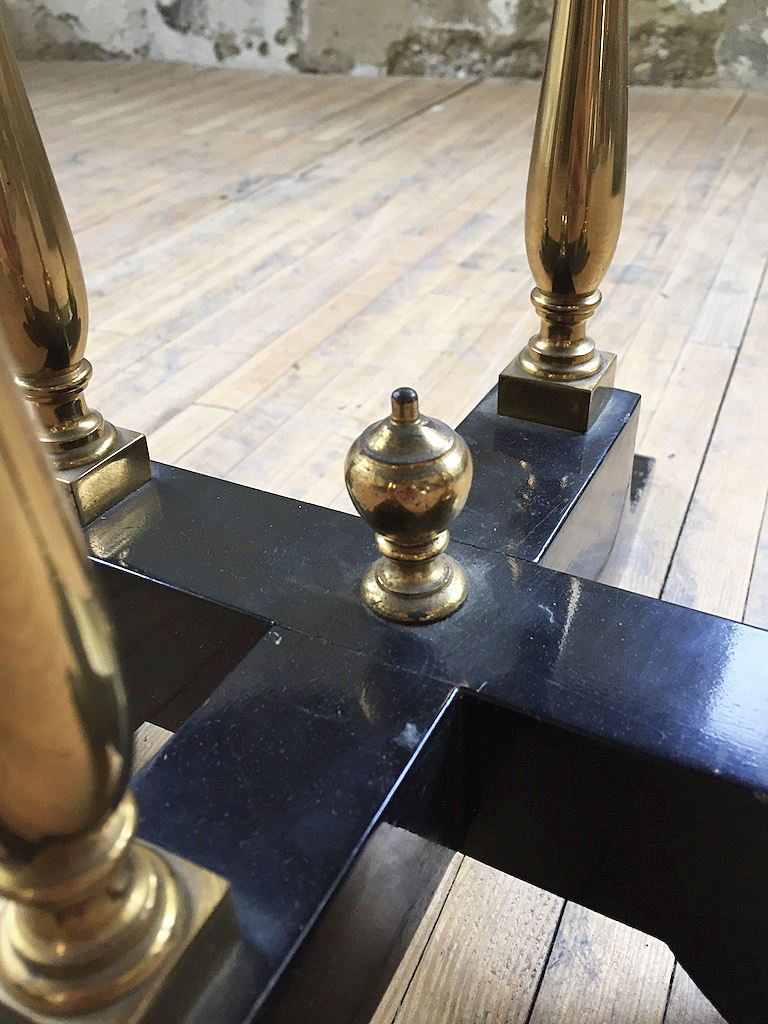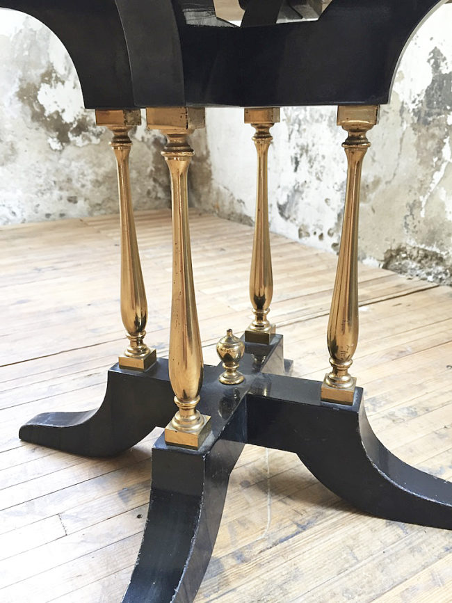 Elle possède un piètement en bronze doré, joliment patiné, et en bois sculpté noirci.
