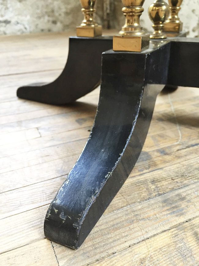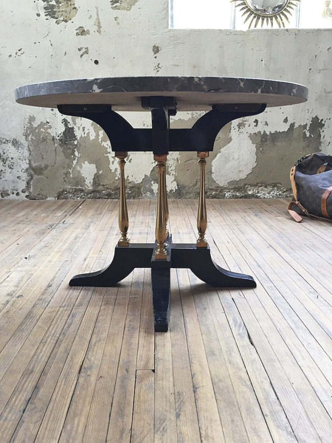 Ancienne table basse Empire XIXème avec son plateau en marbre gris.