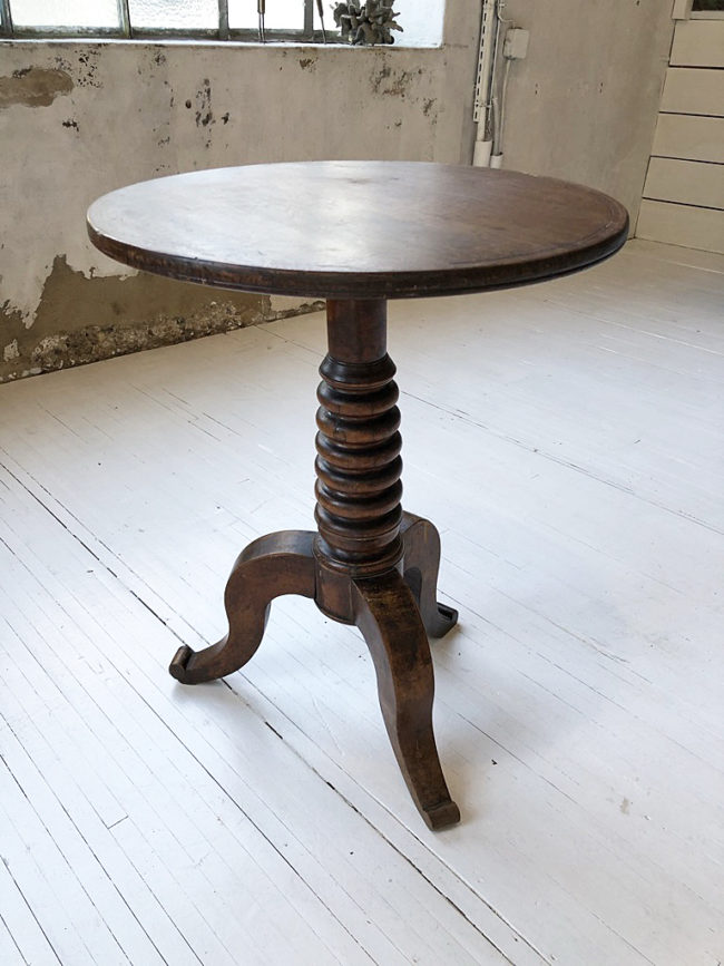 Ancienne petite table d’appoint ronde en noyer d’époque fin XVIII début XIXème.