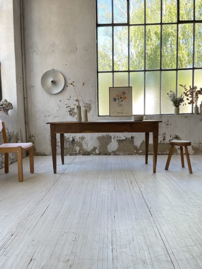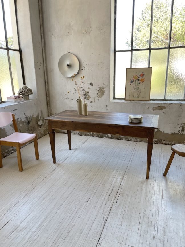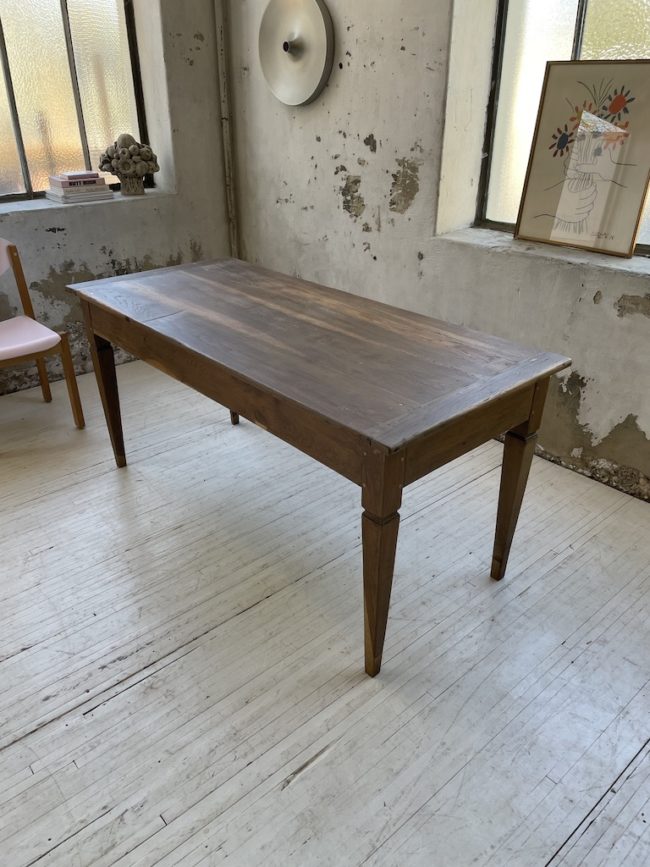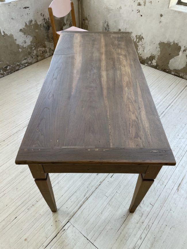 Comme l’attestent les photos, cette table est ancienne et peut comporter des signes visibles d’usage.