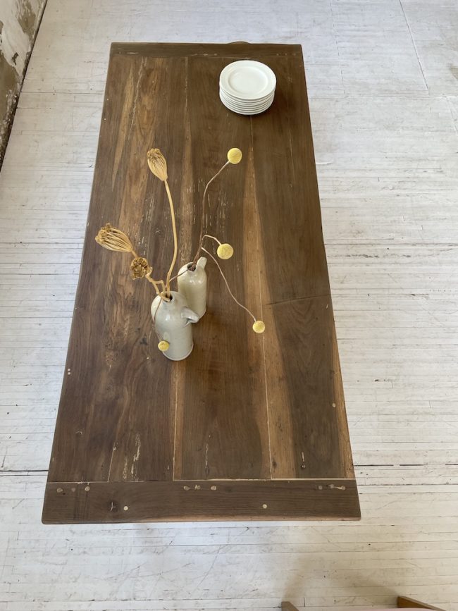 La table a été réhaussée par mon ébéniste afin de lui donner une hauteur adaptée.