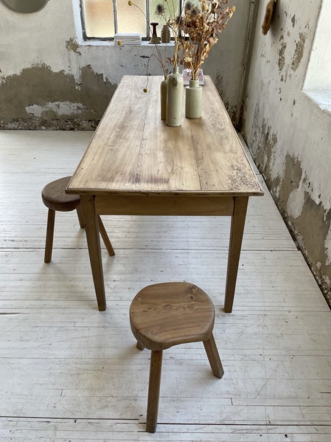 Comme l’attestent les photos, cette table est ancienne et possède des signes visibles d’usage, traces de vermoulures et teintes dans le bois, lui conférant néanmoins toute son authenticité et son charme.