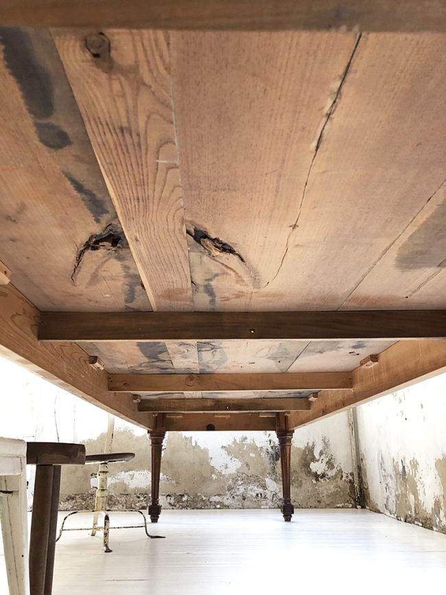 Très ancienne table de ferme, table de métier au format XXXL datant du XIXème, anciennement table de travail probablement.