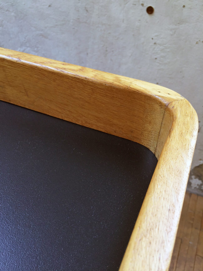 Les tables ont entièrement été poncées, puis vernies. La plateau quant à lui a été peint en noir puis protégé par un vernis. Les tables possèdent un format légèrement différent.