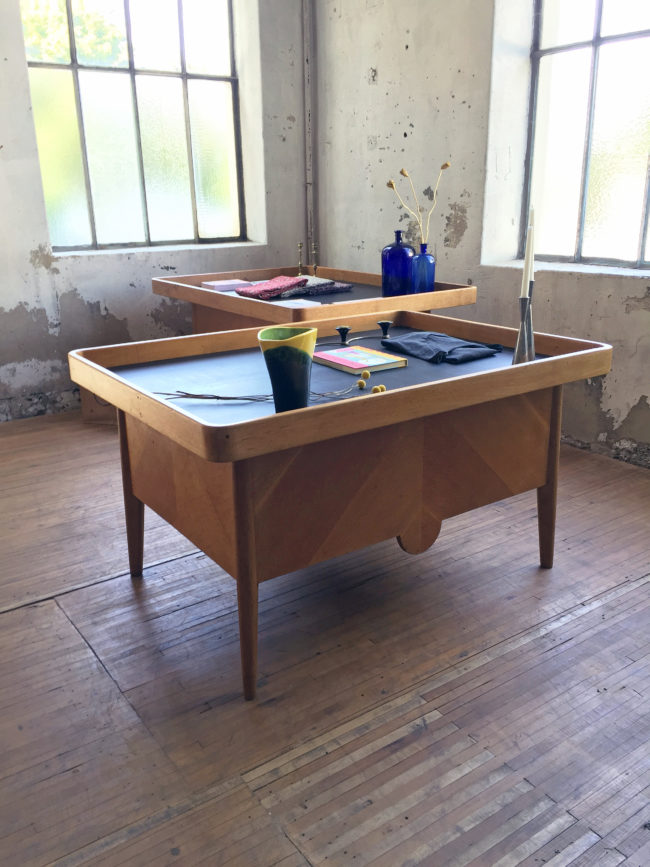 Tables des années 60 issues d’une usine de tisserands de la Croix-Rousse à Lyon.