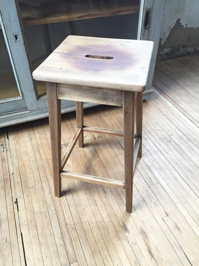 Entièrement poncé puis verni, ce tabouret est sain, mais garde une jolie patine du temps passé.