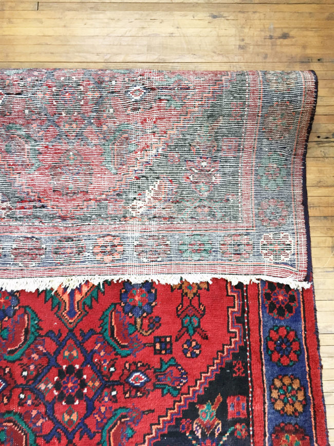 En laine vierge, ce tapis présente quelques signes d’usure normale, conférant aux tapis tout leur charme et les rendant bien souvent encore plus beaux.