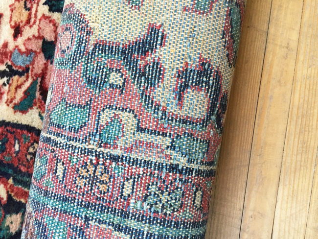 Dû à son âge, le tapis présente quelques signes d’usure, notamment une légère différence de teinte dans un des angles. Les couleurs sont restées très vives.