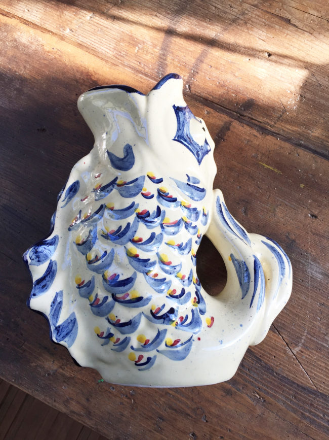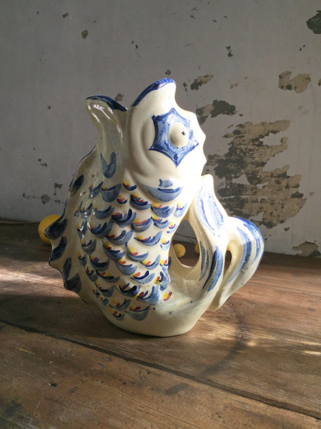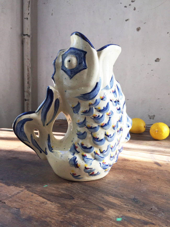 C’est à la fin des années 1870 que la célèbre carafe Poisson (la carafe ‘’GLUGGLE’’ en anglais) est dessinée par la société Thomas Forester & Son. Elle connut un énorme succès grâce au bruit inattendu et drôle qu’elle produit lorsque l’on verse l’eau : ‘’glouglou’’. Même la Reine d’Angleterre succomba à son charme en 1958 ! La carafe Poisson reste une pièce de collection très prisée en Angleterre où elle est encore fabriquée.
