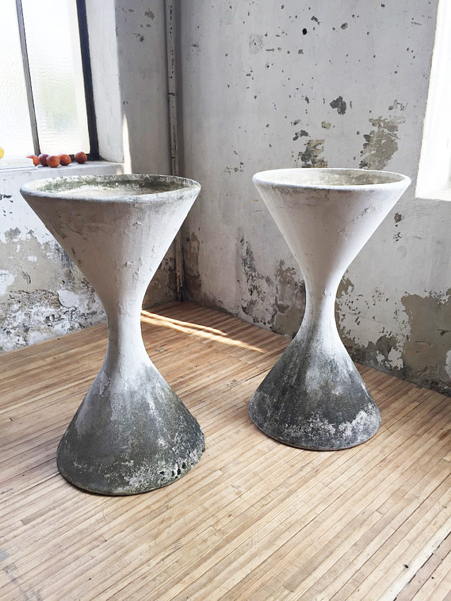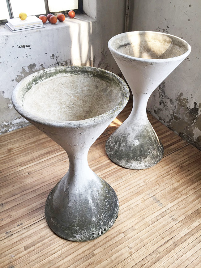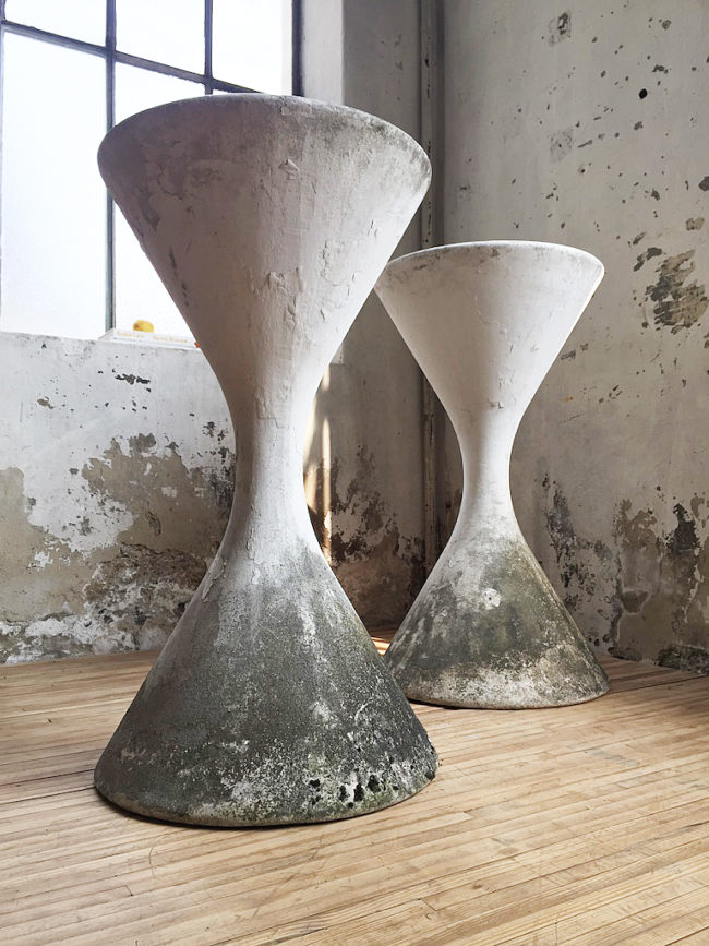 Paire iconique de vasques modèle Diabolo par Willy Guhl & Anton Bel, en fibre de ciment pour Eternit, dans les années 1950.