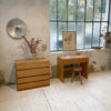 Ancien bureau à caisson en pin massif par la maison Regain, édition Savoie.