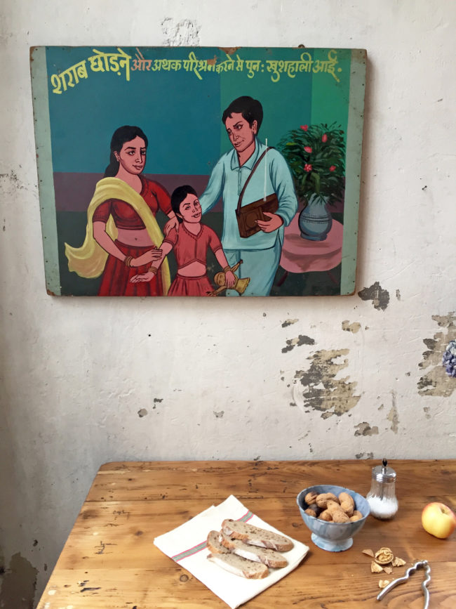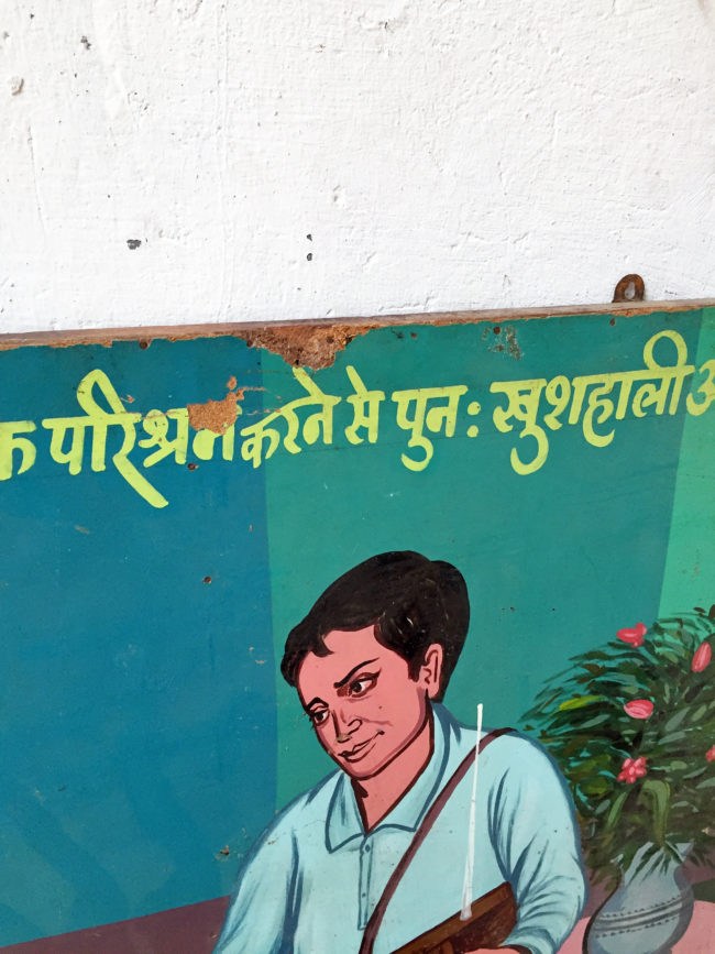 Panneau de bois peint avec de l’acrylique dans des tons vifs et francs, réalisé en Inde il y a une vingtaine d’années.