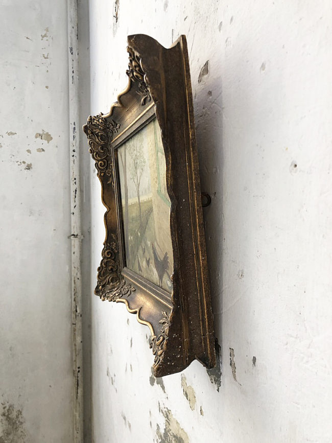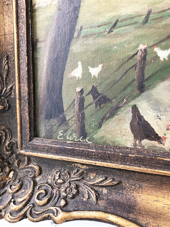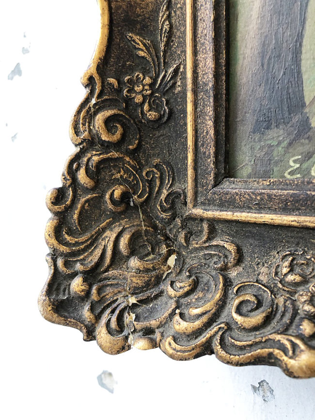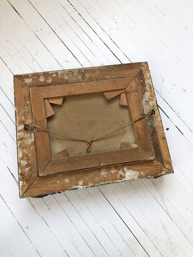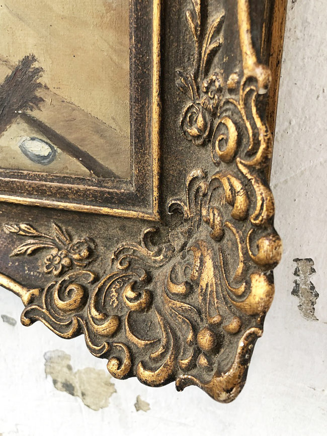 Du fait de la spécificité du cadre, cette toile doit être relativement ancienne (typique du XIXème).