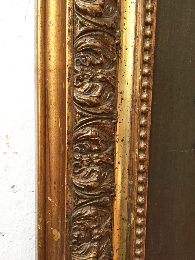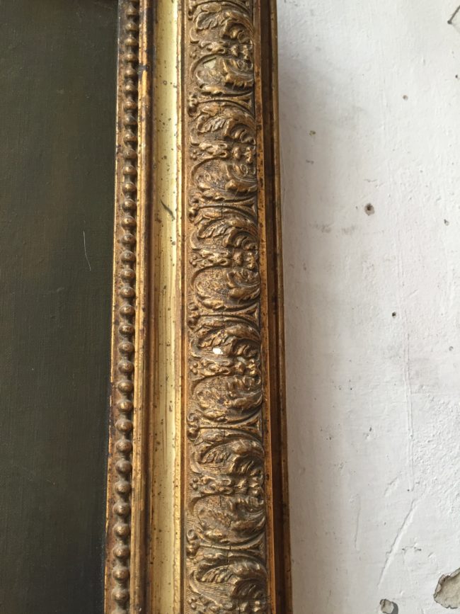 Cette toile, datant du XIXème possède des tonalités foncés avec des couleurs saturées.
