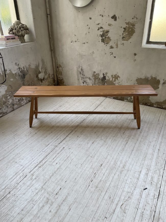 Ancien banc des années 60 totalement en pitchpin avec un très beau design épuré et peu courant.