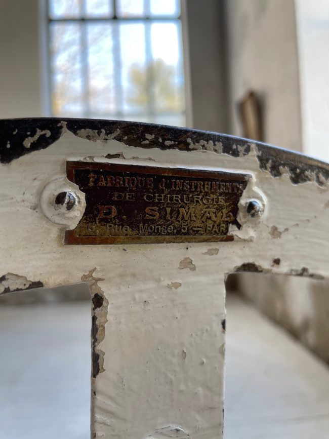 Etiquette avec la signature Fabrique d’instruments de chirurgie D.Simal, 5 rue Monge Paris.
