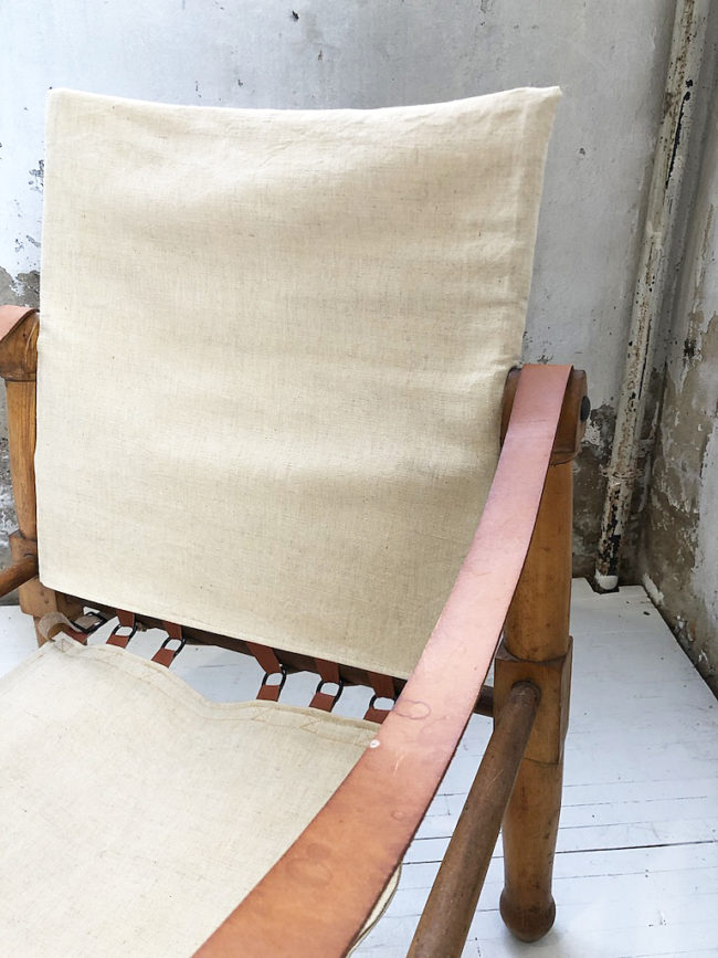 Le tapissage a entièrement été refait à l’aide d’un lin ivoire ancien, pour garder l’esprit de cette pièce.