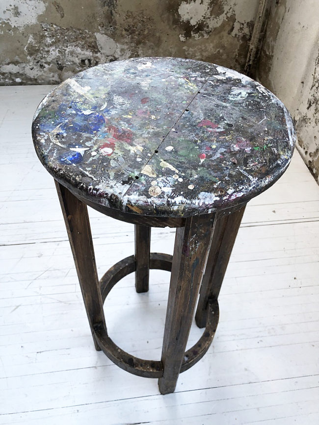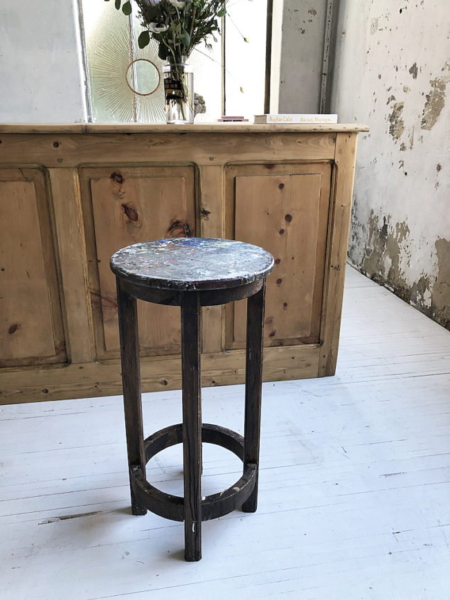 Ancien tabouret haut d’atelier provenant d’un atelier d’artiste.