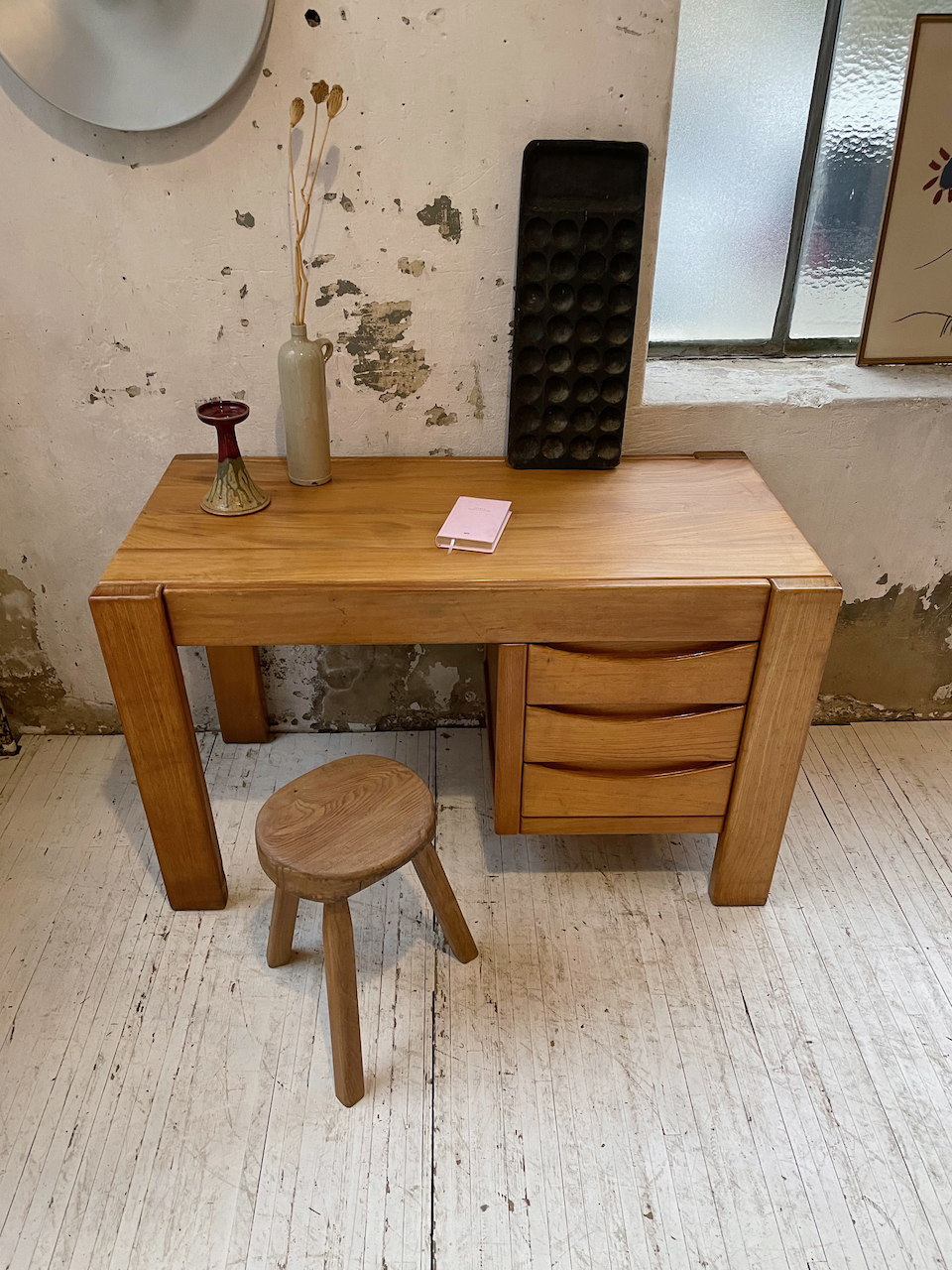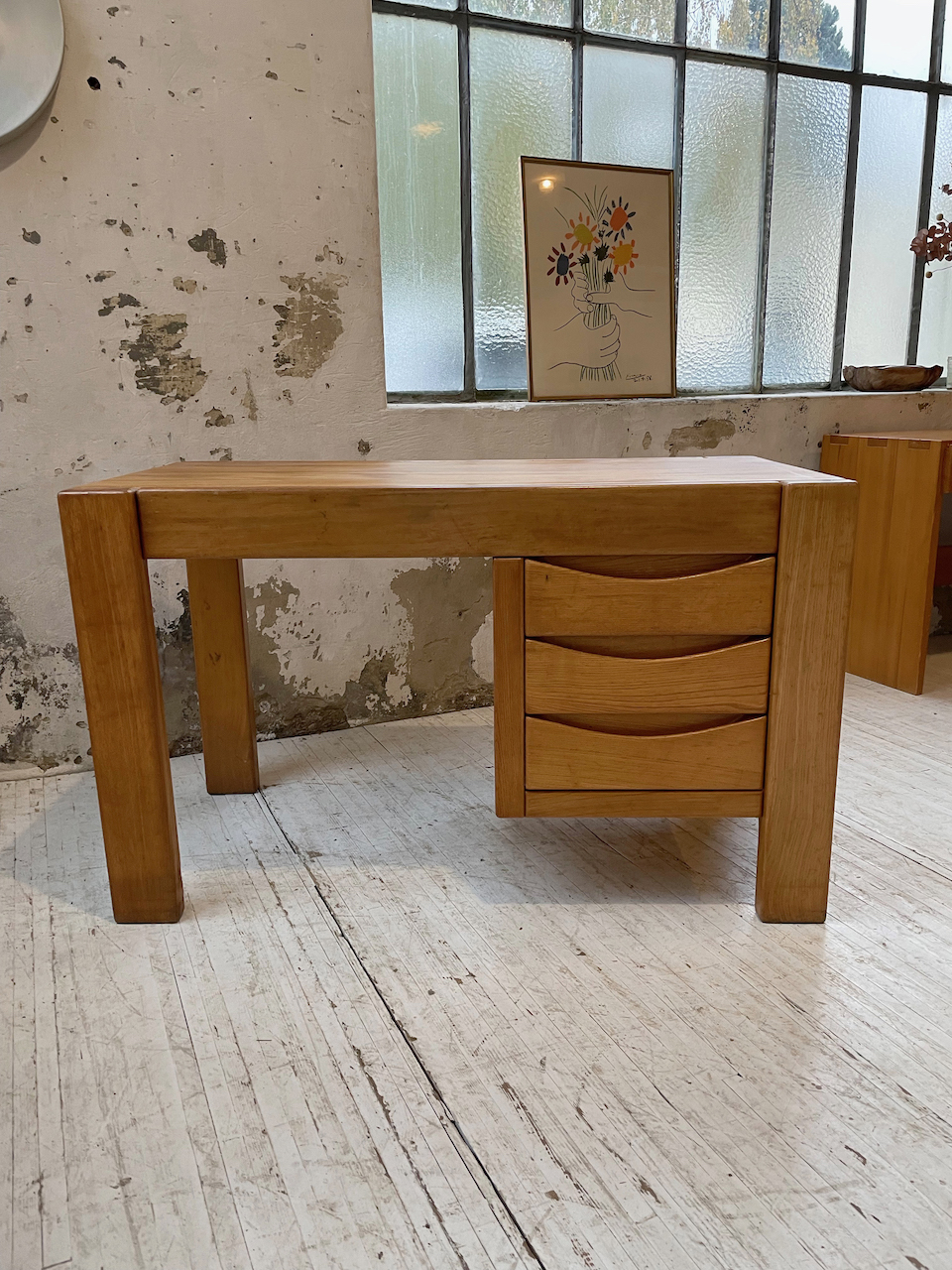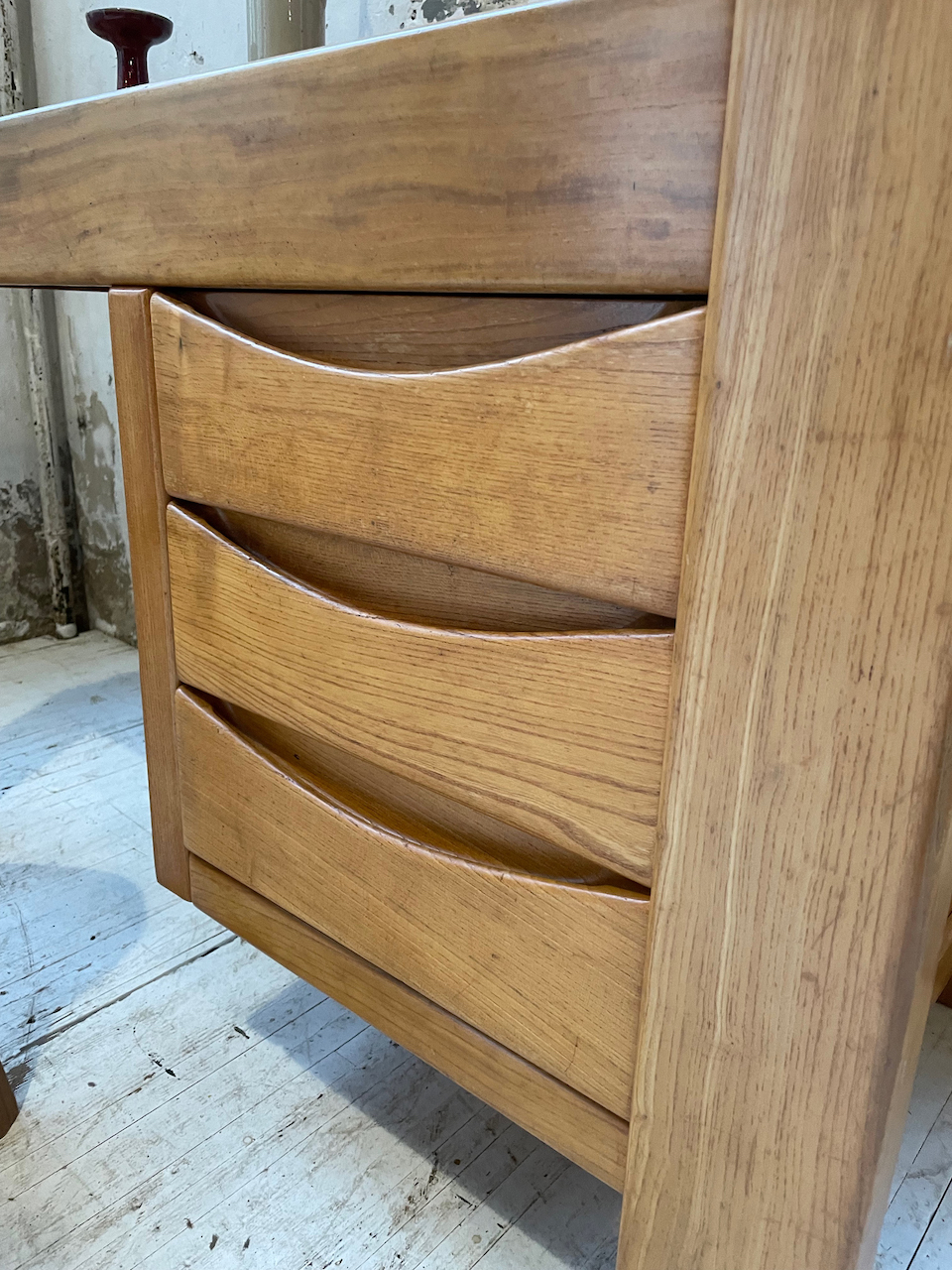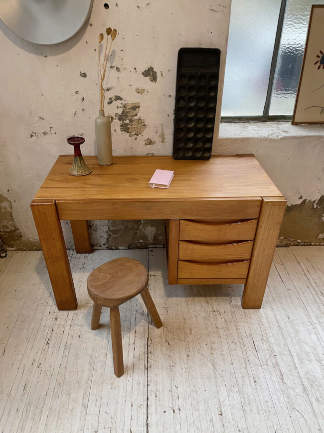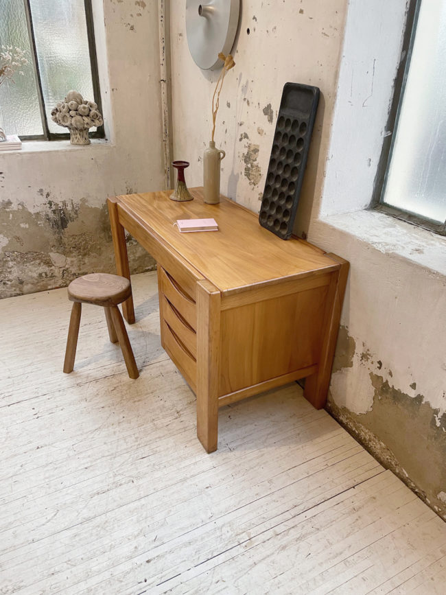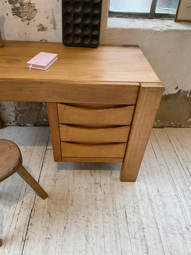 Ancien bureau à caisson en orme massif par la maison Regain.
