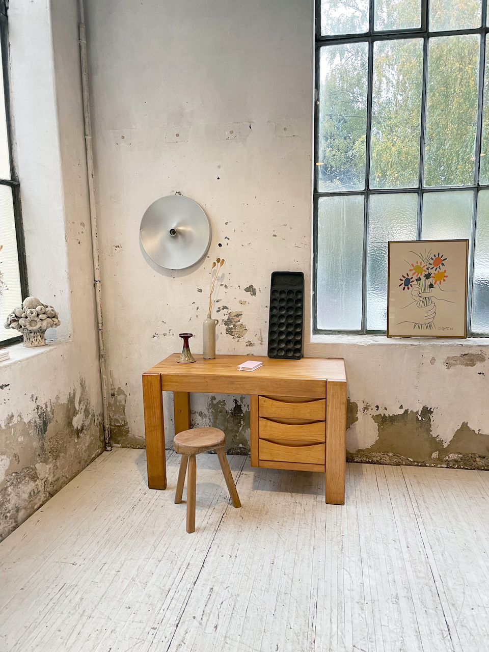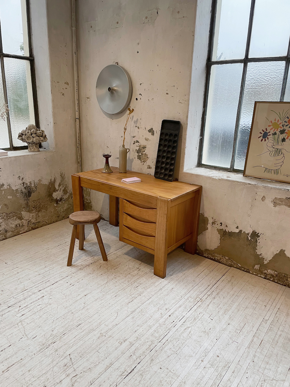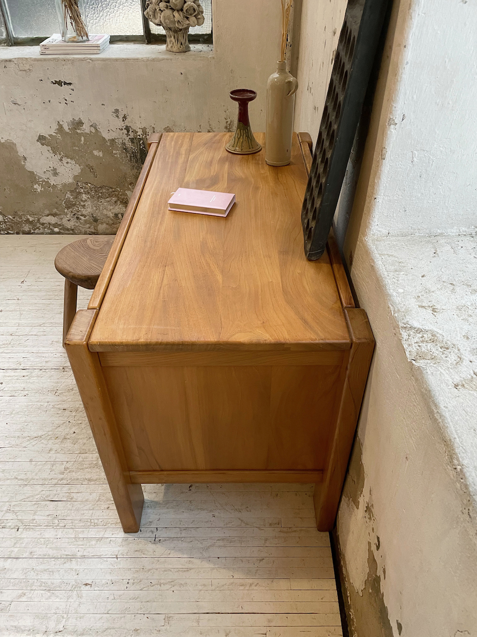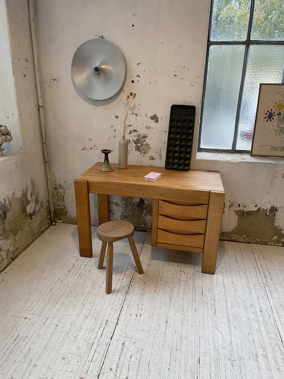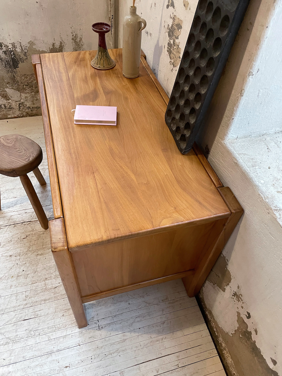 Ancien bureau à caisson en orme massif par la maison Regain.