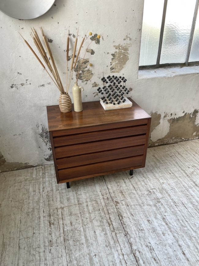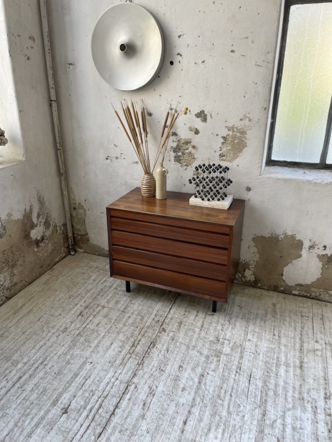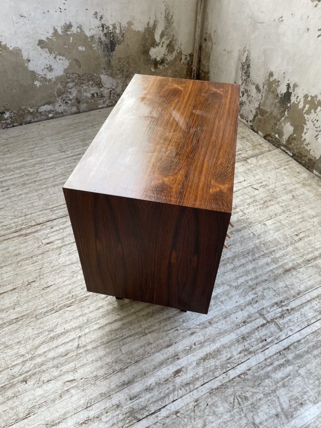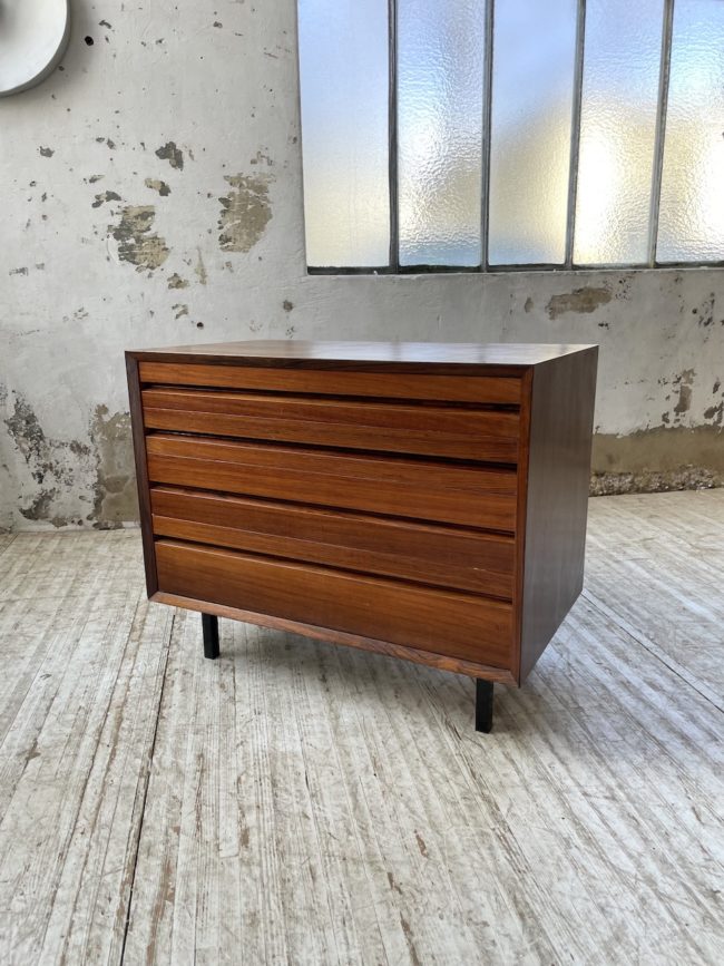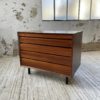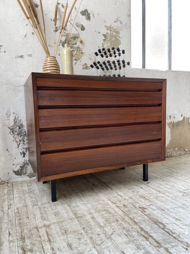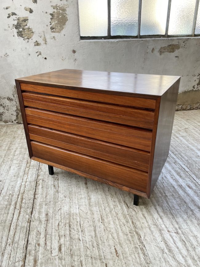 Ancienne petite commode des années 60 d’origine scandinave en palissandre et placage palissandre par Poul Cadovious.