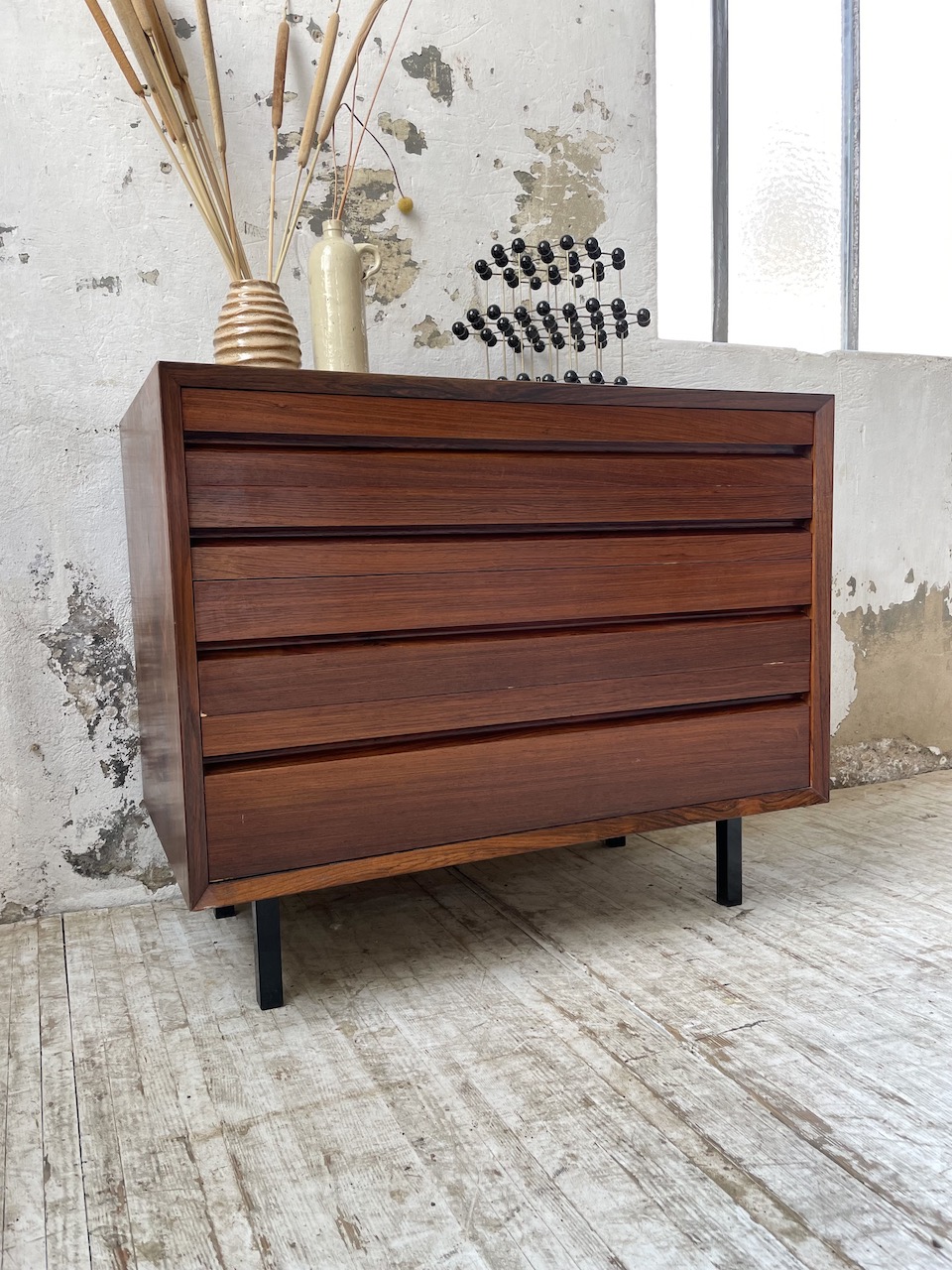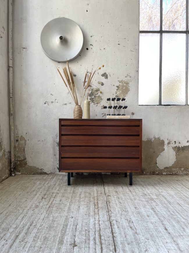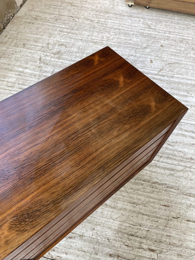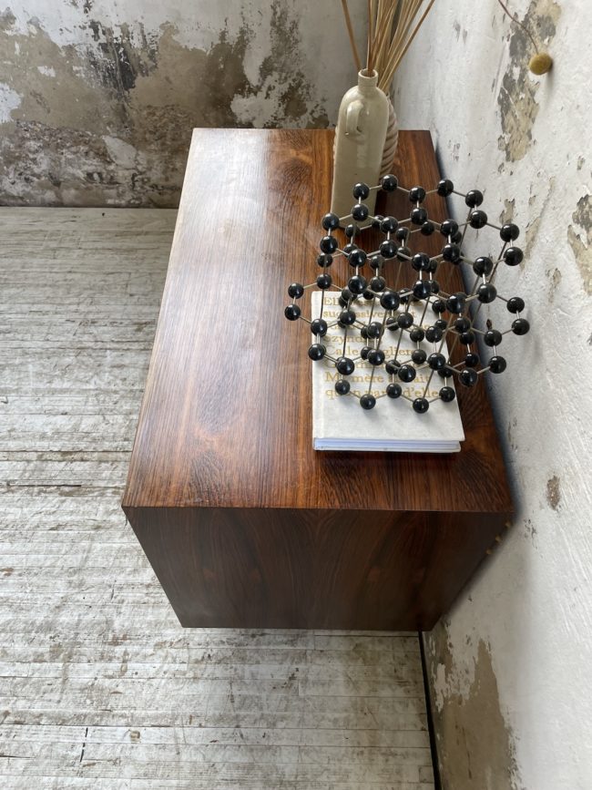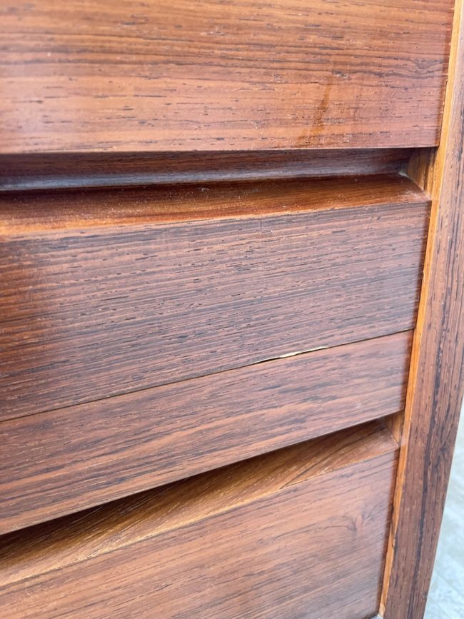 Ancienne petite commode des années 60 d’origine scandinave en palissandre et placage palissandre par Poul Cadovious.