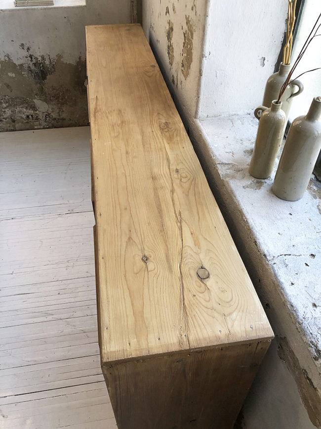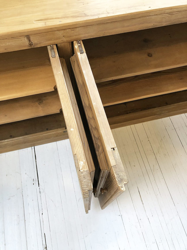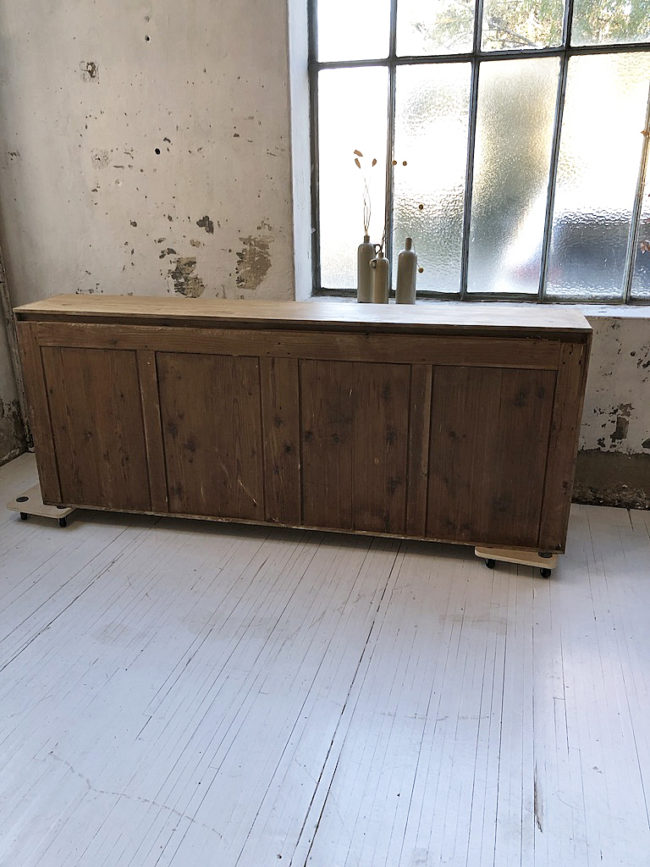 Ancien meuble de métier type enfilade en pin.