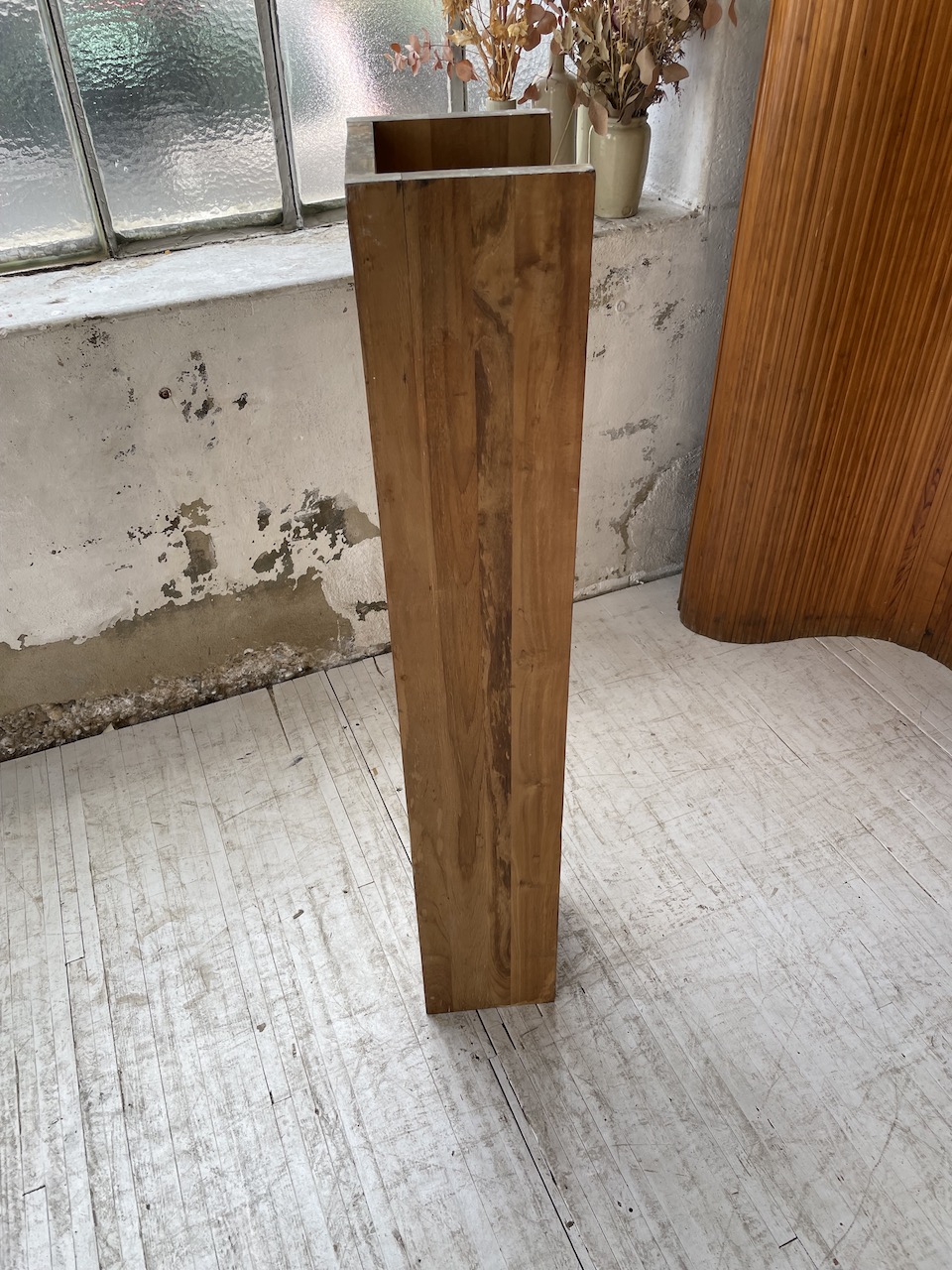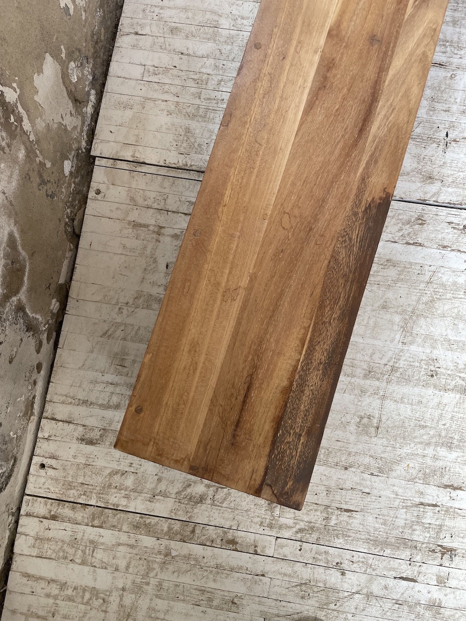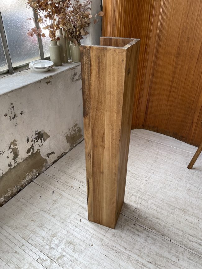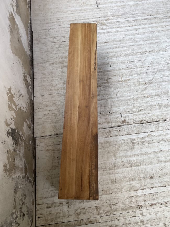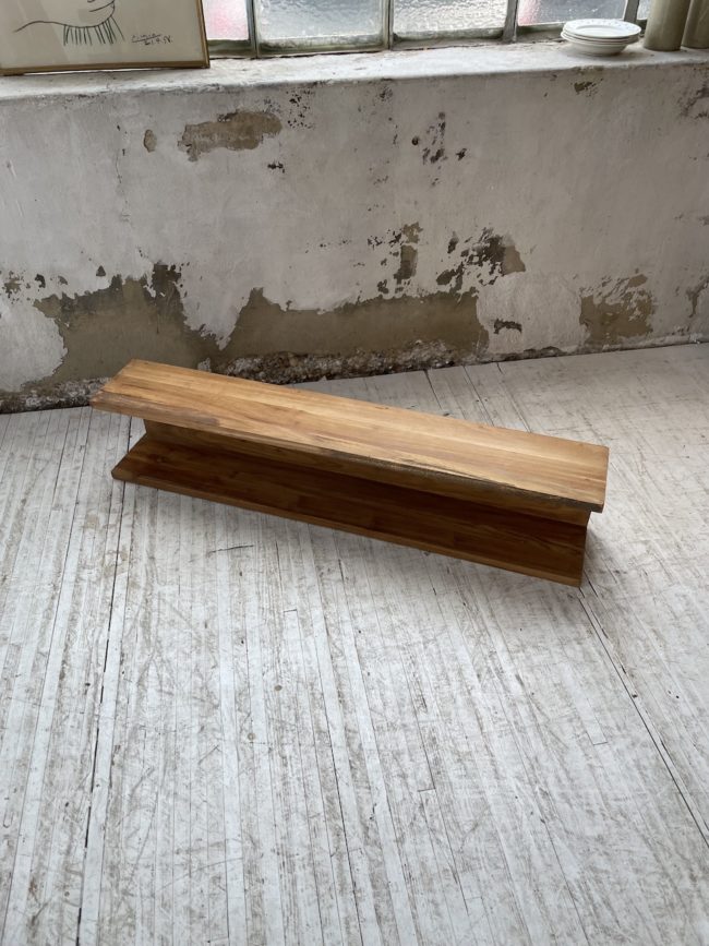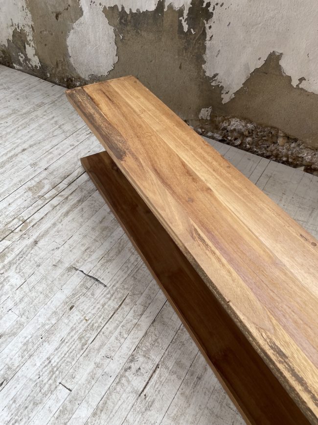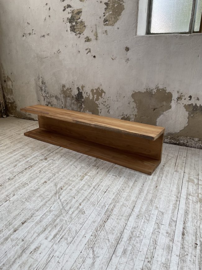 Entièrement noyer massif, on adore son design épuré et simple ainsi que le veinage et la teinte caractéristique du bois.