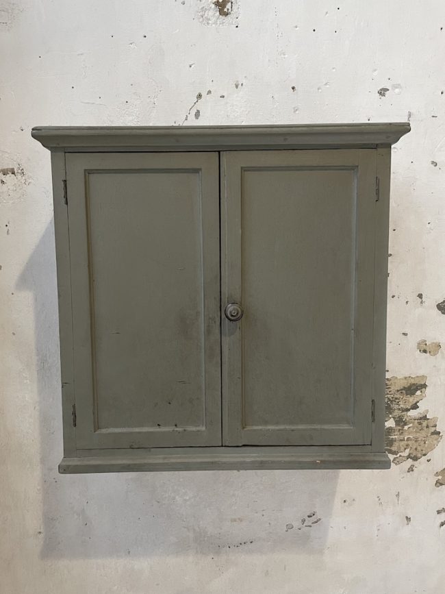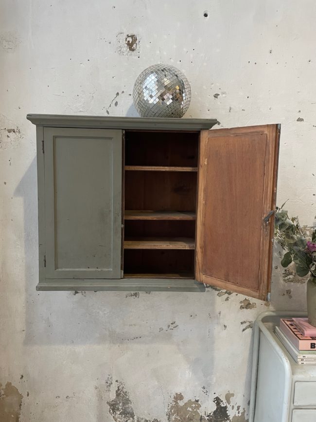 Ce meuble ancien sera parfait pour du rangement d’appoint. Il est a fixer au mur soit à l’aide d’équerre qui se fixeront sur le bas du meuble soit, faisable à travers le fond, dans quel cas il faudra prévoir de percer ce dernier.
