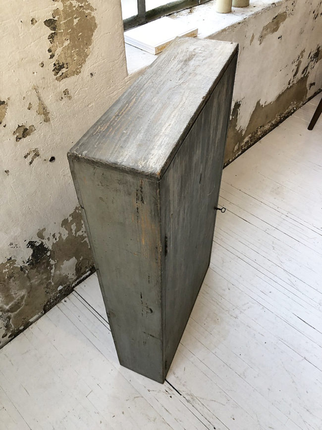 Ancien petit meuble de métier mural, à fixer au mur, dans sa patine d’origine.