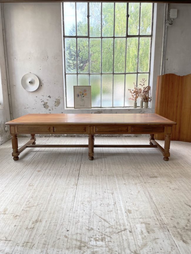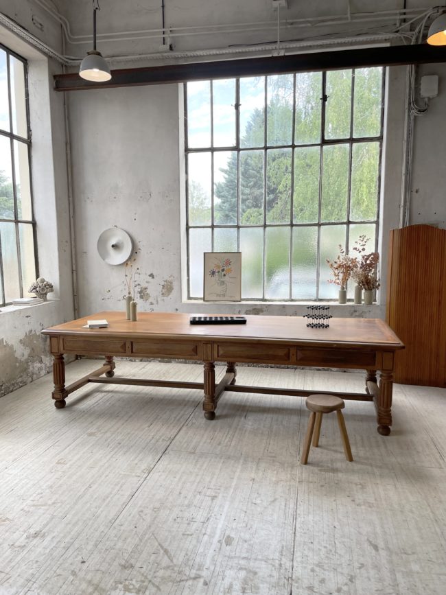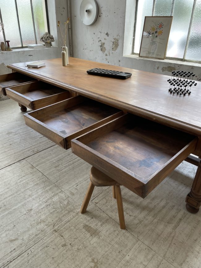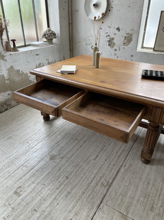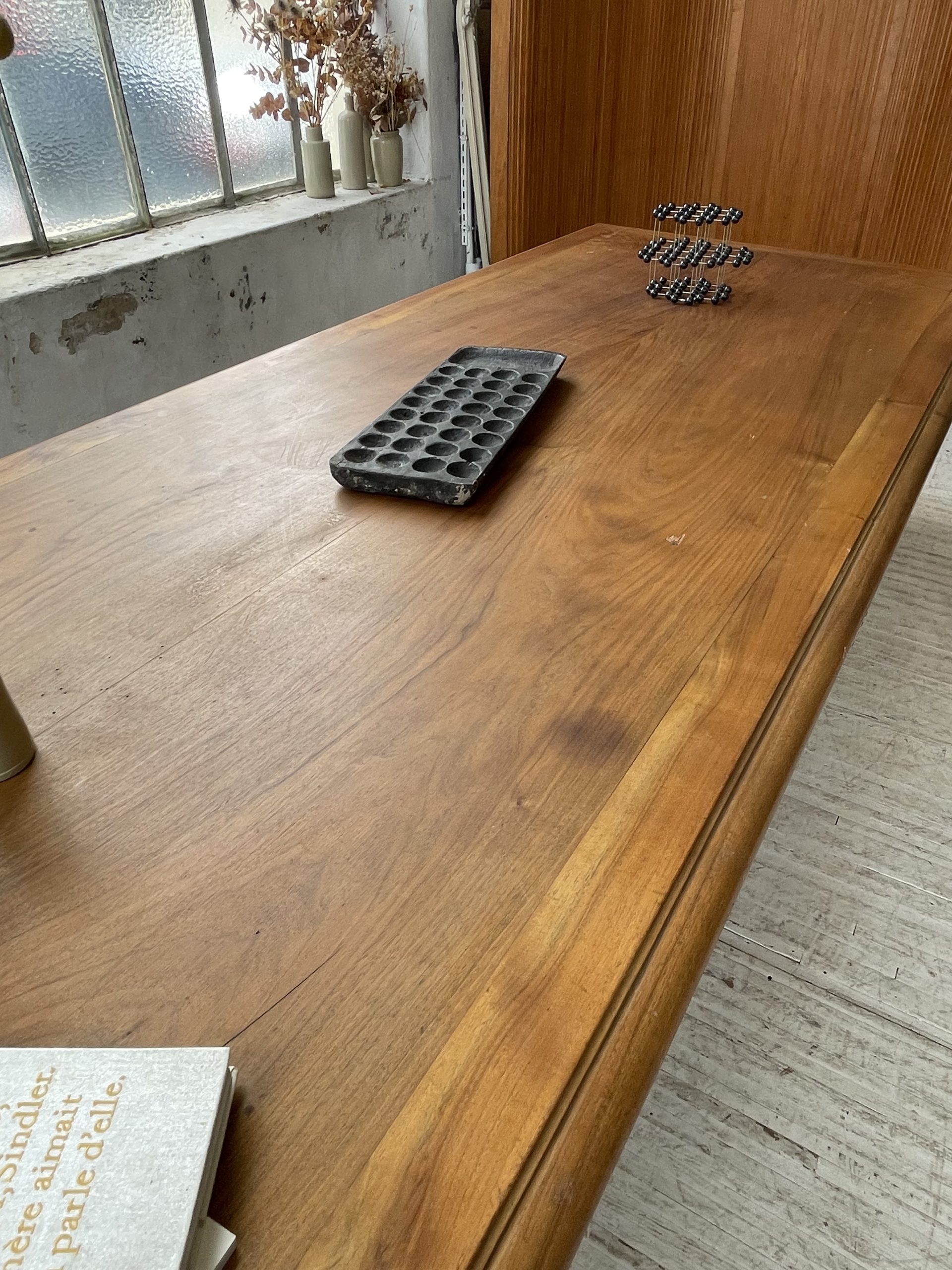 Son format XXL en fait toute sa singularité. Ses détails caractéristiques lui confèrent son charme et sa rareté. Entièrement noyer, cette table est d’une qualité exceptionnelle et peu courante.