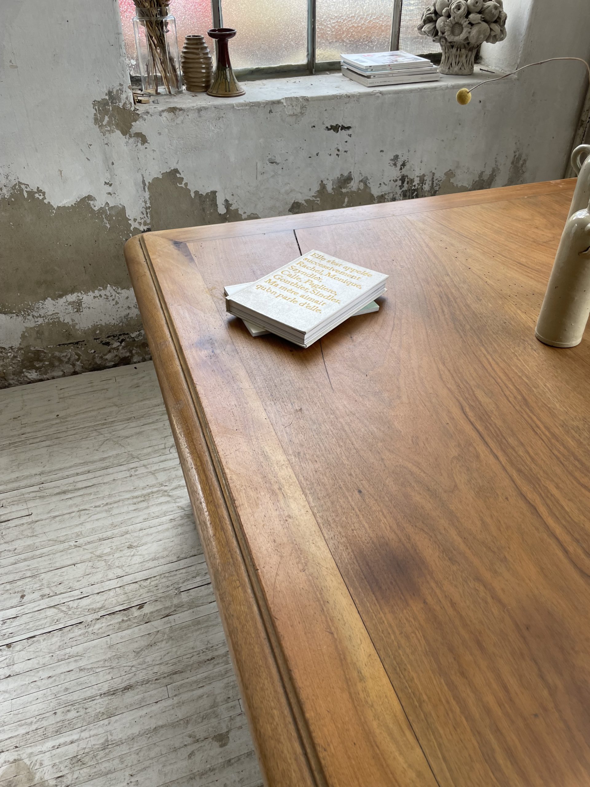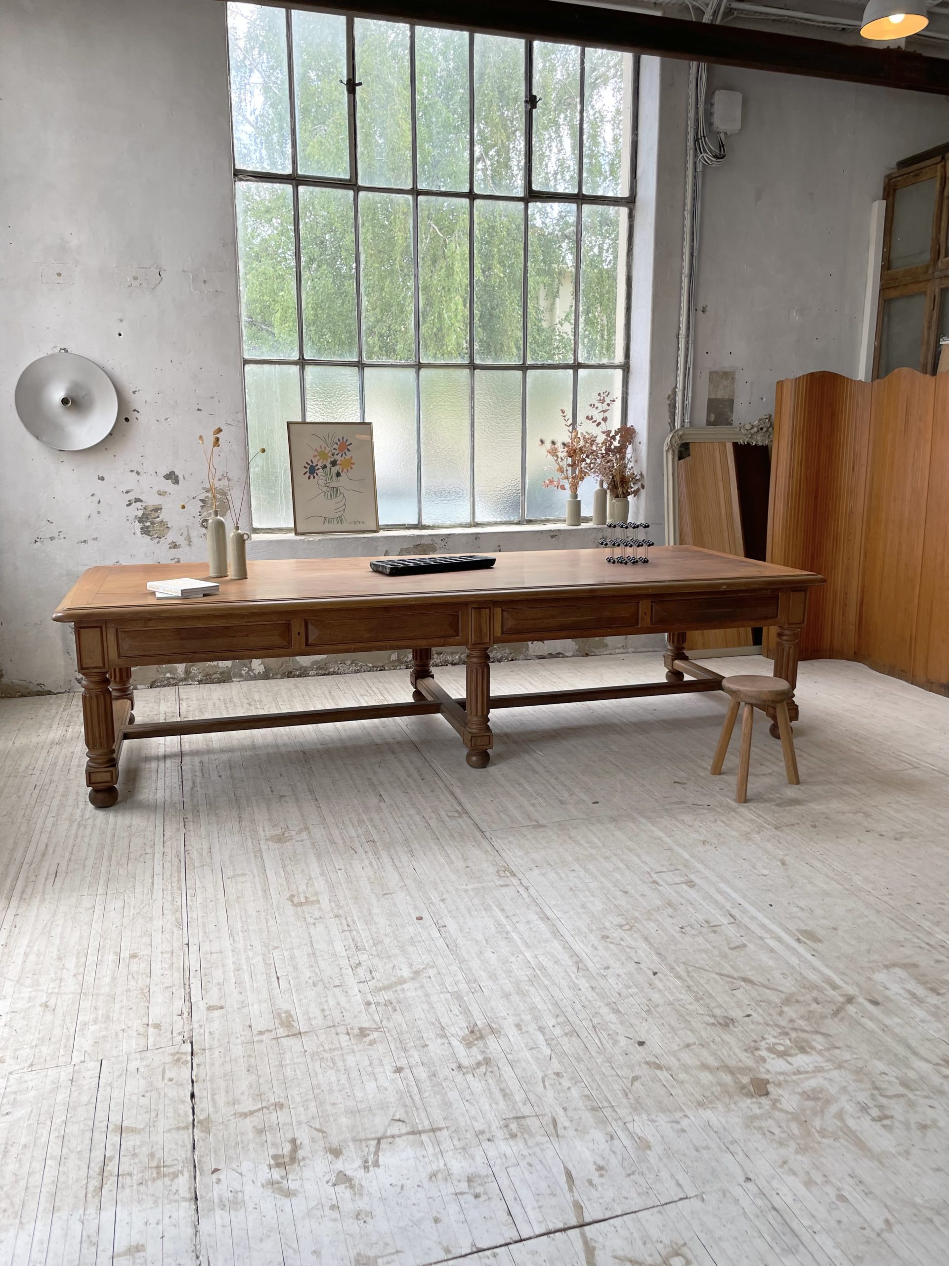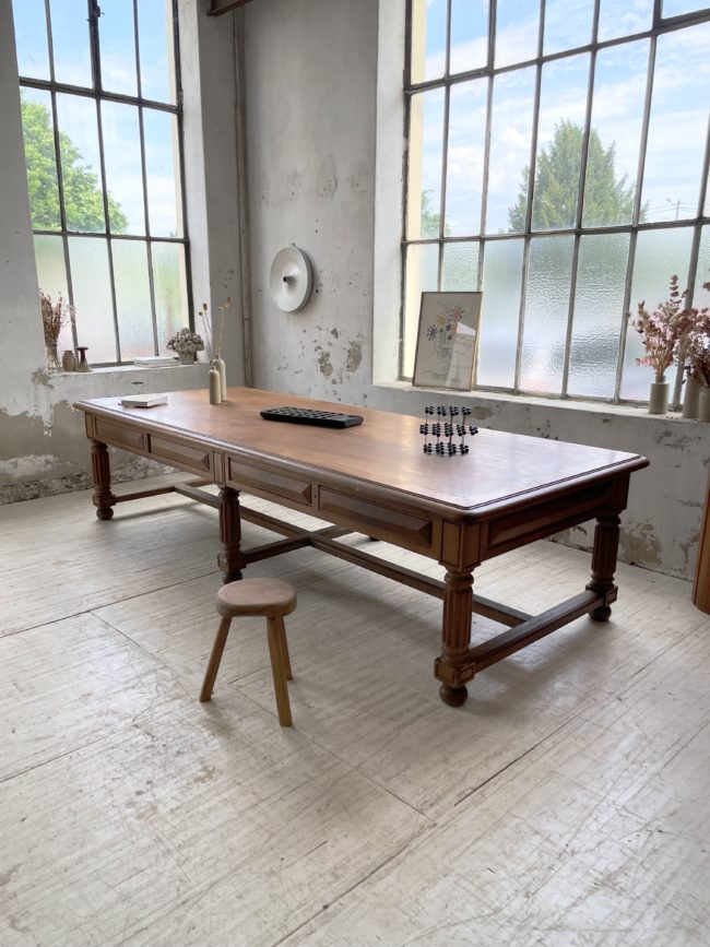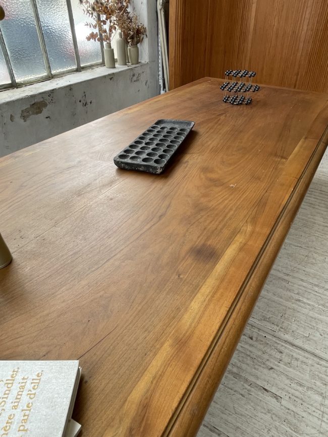 Son format XXL en fait toute sa singularité. Ses détails caractéristiques lui confèrent son charme et sa rareté. Entièrement noyer, cette table est d’une qualité exceptionnelle et peu courante.